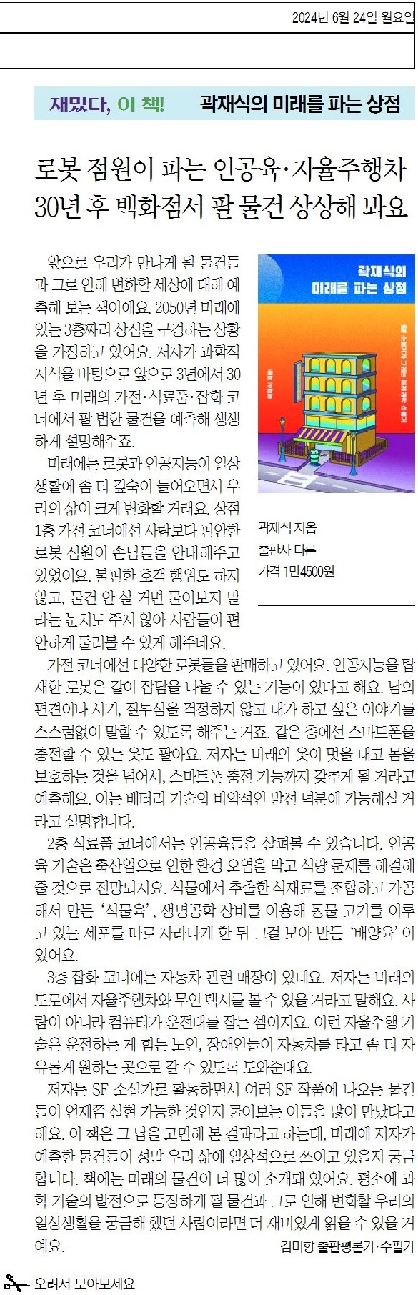 2024년 6월 21일(월) <조선일보> '재밌다, 이 책!' 코너에 게재된 원고입니다