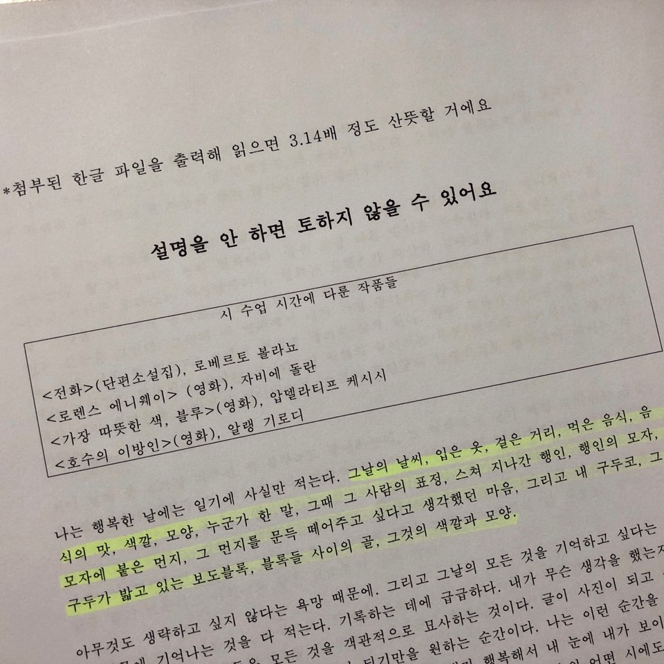 오늘은 문보영 시인의 시 일기 딜리버리 「설명을 안 하면 토하지 않을 수 있어요」를 읽다 보영 시인님처럼 일기를 적어보면 어떨까, 하는 생각이 들었다. 오늘은 행복한 날이라는 말이겠다.