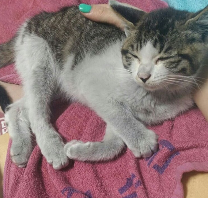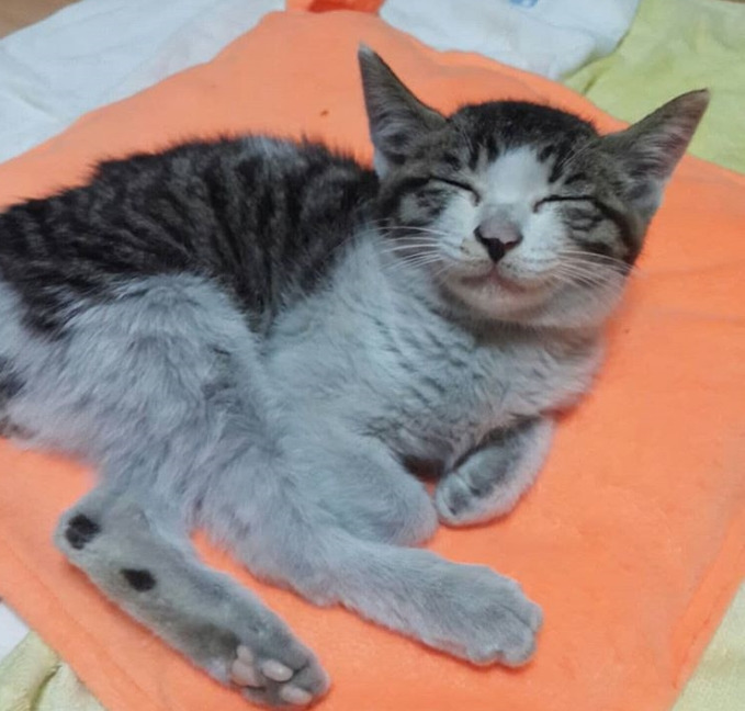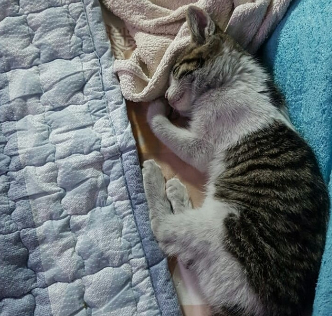 타이어룸에 갇혀 있었던 탓인지 다리가 좋지 않아 잘 서지조차 못하는 말리. 그래도 애교가 얼마나 많은지 사랑스러움 그 자체다. 지금은 내 곁에서 코오 잠든 말리. 모두 말리에게 행운을 빌어주세요.