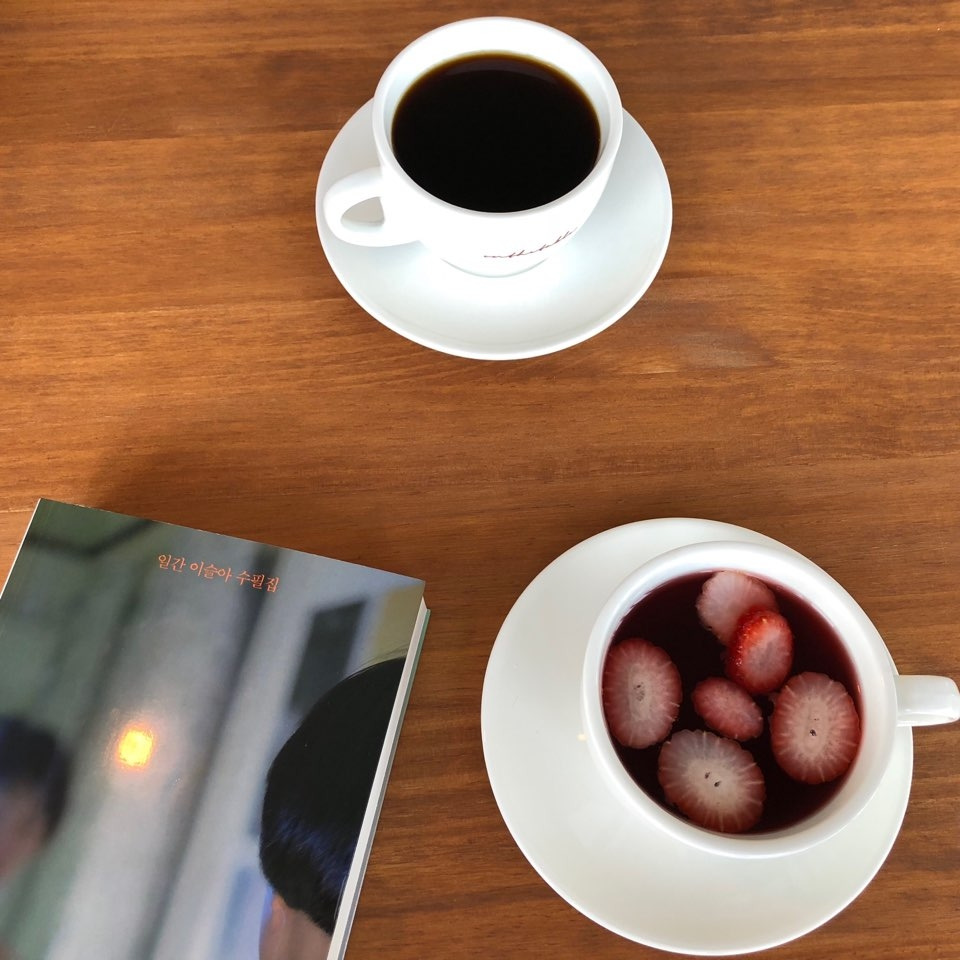 까페묵호당에 갈랬는데 오늘도 휴무였다. 생딸기 오믈렛이 정말 먹고 싶었지만 어쩌다어달로 향했다. 새파란 어달리 바다가 통째로 보이는 카페에서 이슬아 수필집을 읽었다. 부드러운 카페의 원목 테이블과 히비스커스를 베이스로 뭉근하게 끓인 딸기차의 달짝지근한 상큼함은 어쩐지 그 책과 잘 어울렸다.