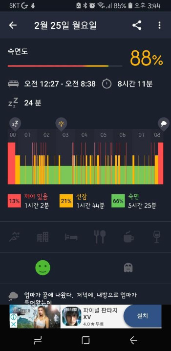 엄마가 꿈에 나왔다. 저녁에, 내 방으로 엄마가 들어왔는데 돌아가셨다는 자각이 들지 않았다. 그냥 반가웠다. 엄마한테 "나 결혼하면 아빠. 할머니집으로 간다는데 엄마는 어때?' 하니 엄마는 "여기서 아빠랑 살아야지" 했다. 엄마가 아빠랑 계속 산다니. 결국 어쩔수 없이 계속 사는 구나. 하는 생각이 들었다. 엄마는 아무개병원에 다녀왔다고 했다. 내가 아프다는 엄마 팔다리를 주물러 주었다. 엄마 팔다리의 감촉이 생생하다.
