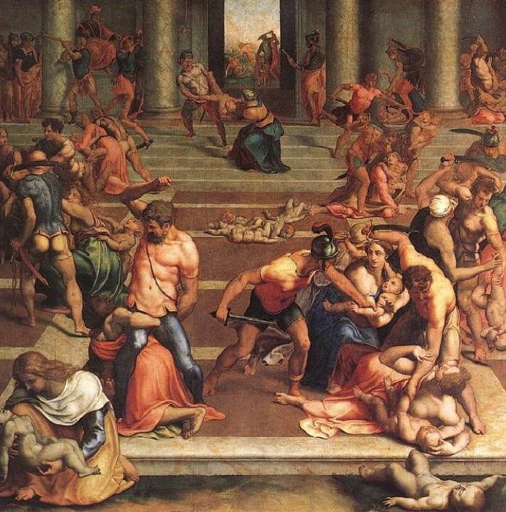 헤롯왕 『성경』 「마태복음」에 따르면 왕이 태어나리라는 동방박사의 예언을 들은 헤롯왕이 베들레헴의 아기 2000명을 죽였다고 한다. <사바하>는 이 헤롯왕의 이야기에서 어느 정도 모티프를 따온 듯하다. 김제석은 네충탄파의 예언을 듣고 눈빛이 변한다. 생에 연연하게 된 김제석은 자신만의 사천왕을 만들어 고향 영월에서 태어난 소녀들을 죽인다.