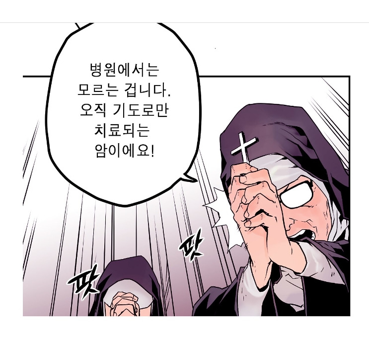 무속인 <검은 사제들>처럼 도입부의 분위기를 그로테스크하게 만들고 관객의 눈을 사로잡는 데 성공적인 기여를 한다. <검은 사제들>에서도 그랬지만 <사바하>에서도 무속인은 악의 전투력을 몸소 측정해 보여주는 존재다. <사바하>에서 무당은 그것에게 다가가다가 그것을 보호하는 뱀에 물려 달아난다. <검은 사제들>에서 제천법사는 마르바스의 힘에 눌려 무당들이 하혈하자 쫓기듯 물러난다. 그러나 상대가 너무 강한 것뿐, 두 작품 모두 무당 스스로 초자연적 존재를 느낄 만큼 영능력이 있다.