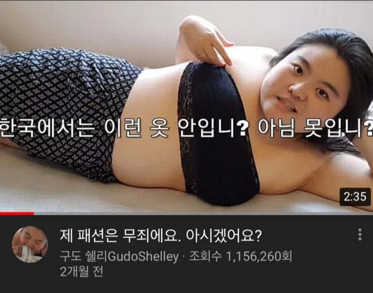 언뜻 보기엔 그리 특별할 것 없어 보이는 쉘리의 먹방 영상이 인기가 많은 이유는 무엇일까. 쉘리의 검은색 브라탑 패션이 파격적이고, 또 그에 대해 사람들이 왈가왈부하기는 한다. 그렇다 보니 쉘리가 '한국에서는 이런 옷 안입니? 아님 못입니?'라는 영상을 올리기도 했다. 그러나 더 근본적으로는 사회가 주는 우울과 스트레스로 만연한 '폭식'에 대한 공감과, 쉘리 자신의 남다른 당당함 그리고 자존감이 인기의 요인 아닐까 싶다. 사회가 정해놓은 틀과 기준은 그에 맞지 않는 이들의 자존감을 깎아내리는 방식으로 공고해져 왔다. 누군가의 상실감과 패배감을 동력 삼아 시스템은 풍선처럼 거대해진다. 쉘리는 예의 그 당돌하고 흡인력 있는 말투로 사회가 정해놓은 틀과 기준을 벗어나자고 말한다. 그건 내가 정한 게 아니니까. 오히려 우리가 기준으로 삼아야 할 것은 사회가 제시한 그 무엇이 아니라 우리 자신, 그러니까 나 자신이라고 말한다.