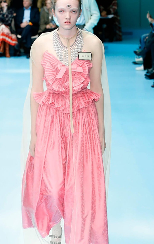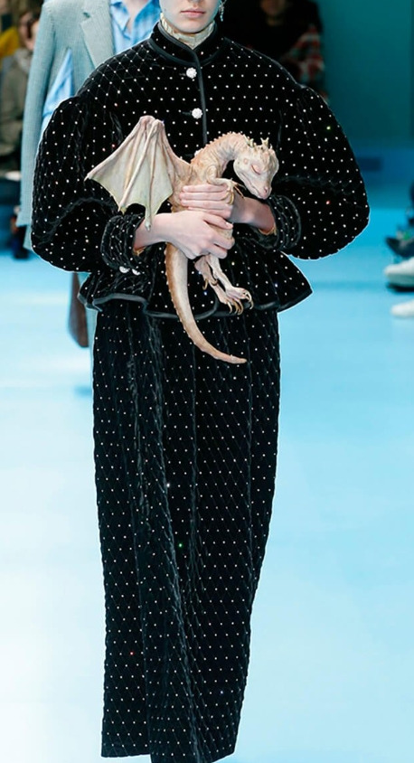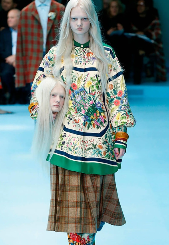 그러나 그동안 미켈레의 구찌는 젠더와 세대의 경계를 흐릿하게 만드는 컬렉션을 선보이더니 급기야 올해는 사이보그를 전면에 내세웠다. 자신의 얼굴과 똑같은 또 다른 얼굴을 들고 있는 소녀랄지, 아기 용이나 도마뱀을 들고 있는 모델을 보면 불안하고 끔찍하다. 미켈레는 말했다. "이제 더 이상 우리는 소녀나 소년이 아닙니다. 이제 우리는 우리가 되고 싶은 것을 결정해야 합니다."