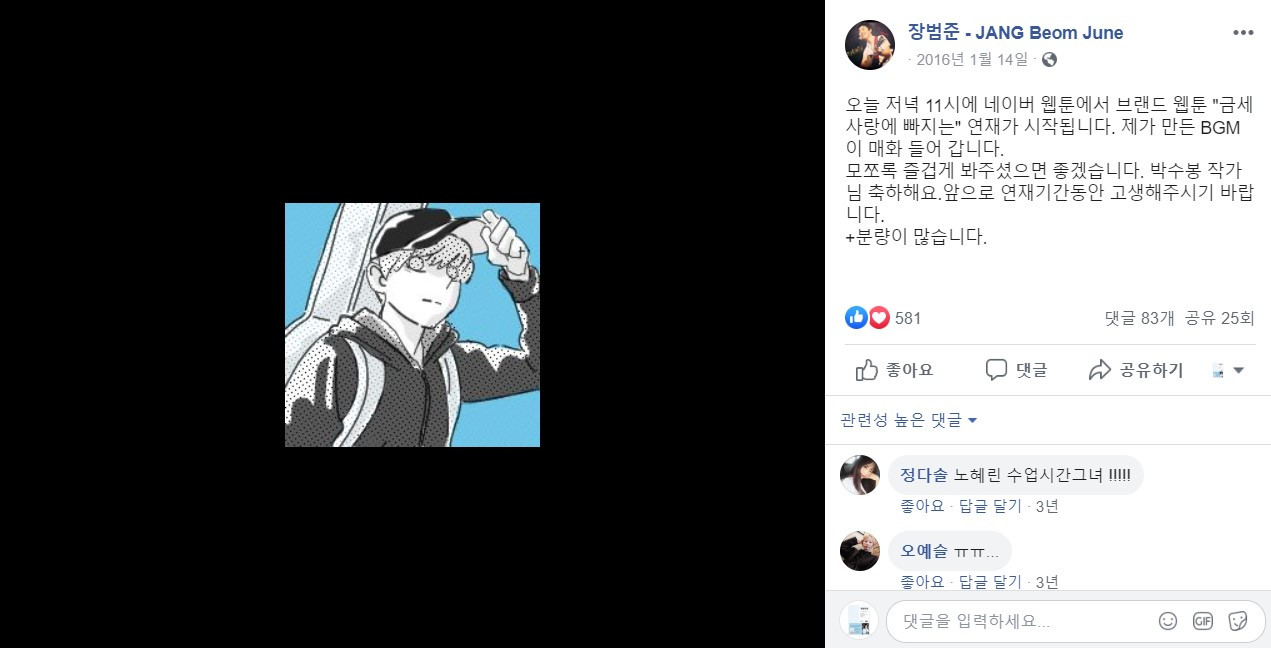 엉엉어엉(taza****) 장범준 2집 앨범 브랜드 웹툰이란거에 또 한번 놀라고(2016-01-14 23:13)