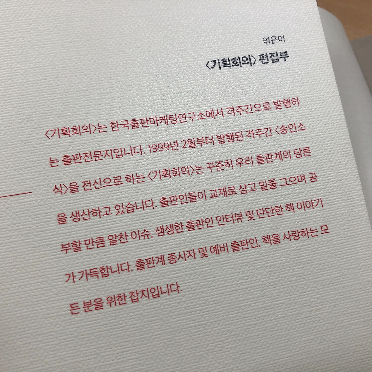 <기획회의>는 창간호부터 지금까지 ‘필드(현장)’에서 일하는 이들이 만들어내는 구체적인 ‘팩트’를 가장 소중하게 생각해왔다. 이런 정보야말로 현장 종사자에게 가장 필요한 교양이라고 보았기 때문이다. 그러는 과정에서 무수한 새로운 필자와 저자를 탄생시켰다. 그들은 그들만의 생각을 보여줬다. 나와 다른 생각, 즉 생각의 차이가 바로 상상력이었다. <기획회의>를 읽으면서 상상력을 키워온 이들이 많았다. 출판계 내부에서뿐만 아니라 문화계 전반에서 <기획회의>를 참조하는 사람들이 의외로 많다는 사실을 확인하게 되었다. 그래서 <기획회의>의 행보는 앞으로도 계속 이어질 것이다.