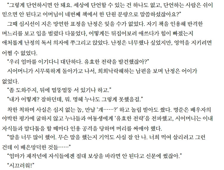 왼쪽은 정지돈의 '당신을 위한 것이나 당신의 것은 아닌'이고 오른쪽은 정세랑의 '시선으로부터,'이다. 두 작품을 읽으며 공통점을 발견했다. '인용'! 정지돈은 금정연의 책을 인용해 금정연과 이야기했고 며느리 김난정은 시어머니 심시선의 네 번째 책을 인용해 심시선을 공격한다. 글을 쓰는 사람들은 자꾸 까발려진다. 글에 본인이 담겨 있고 본인도 모르게 글을 쓰고 그래서 글엔 의식적이든 무의식적이든 '자기'가 녹아 있다. 지인들은 종종 내 책을 읽고 나를 더 잘 이해하게 되었다고 말하곤 한다. 나도 최근 지인이 출간한 책을 읽으며 그 지인과 나의 관계에 대해 돌아보고 그 지인에 대한 이해의 폭이 좀 더 넓어진 것 같은 경험을 했다. 무섭기도 하고 재미있기도 하다. 바야흐로 인용의 시대인가.