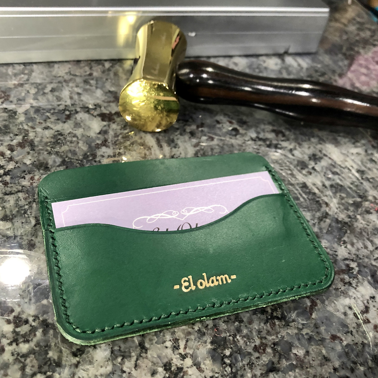 바느질이 서툰 나는 녹색의 가죽과 같은 톤의 실을 선택해 바느질 실력이 탄로 나지 않는 쪽을 선택했다. 앞서 말했듯 내겐 너무 어려웠던 바느질이 끝난 뒤 삐뚤빼둘한 실들의 흔적을 망치로 두드려 다듬어 주었다. 다듬이질을 한 뒤엔 한결 나아졌으나 이렇게 삐뚤빼뚤한 실선이 있는 카드 지갑은 정말이지 세상에 단 하나뿐일 거라는 생각이 들었다(하하).