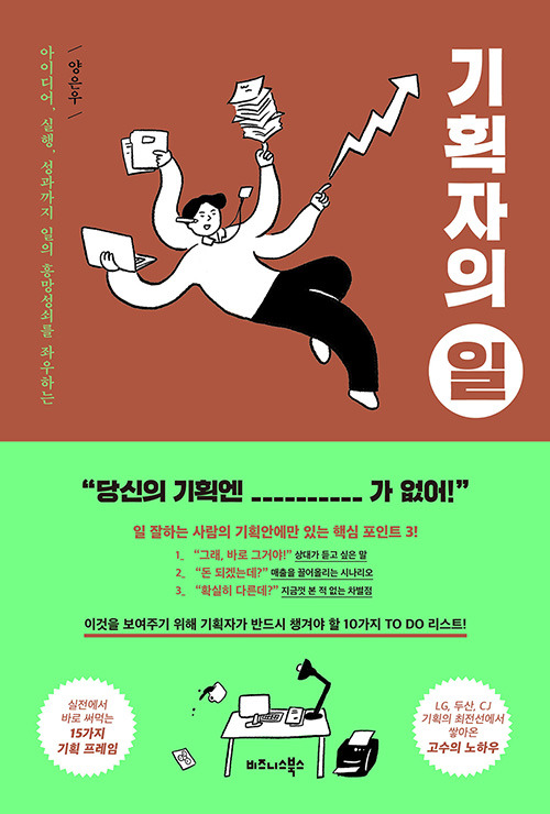 짧게 요약하면 기획은 새로운 아이디어를 제안하고 실행해나가는 과정이라고 할 수 있다. 하지만 이런 정의에는 뭔가 중요한 것이 빠져 있다. 기획이 단순히 새로운 아이디어를 제안하고 실행해나가는 것일까? 기획은 실행하기 전과 실행하고 난 후가 반드시 달라져야 한다. 즉 가치가 높아져야 한다. 만일 기획 이후에도 가치가 높아지지 않고 그대로 있거나 오히려 하락했다면 이는 실패한 기획이다.