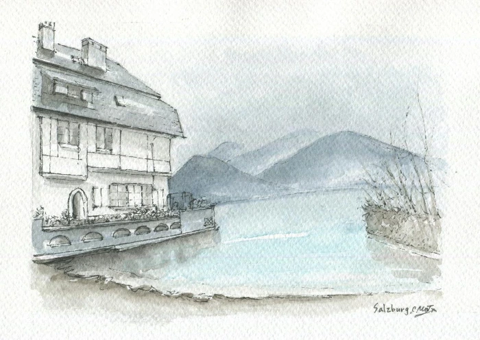 흐르는 길에 한 줌 기억을 그리다(수채 펜드로잉)
