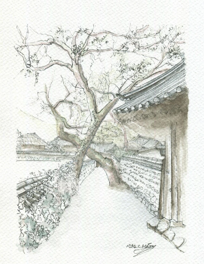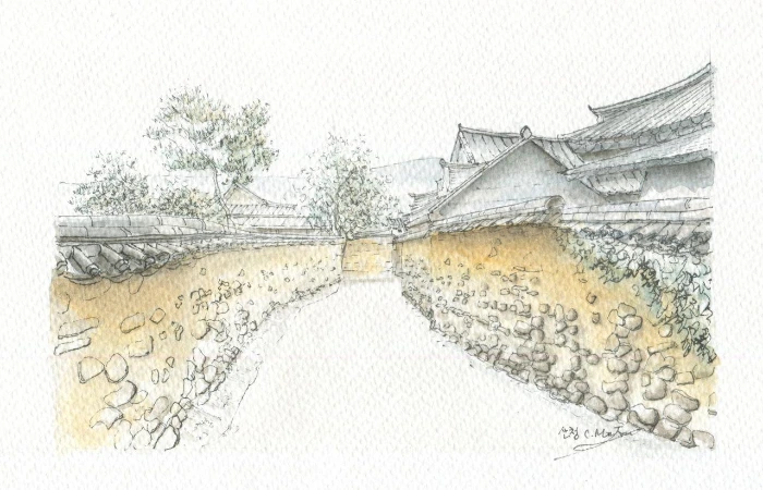 흐르는 길에 한 줌 기억을 그리다(수채 펜드로잉)