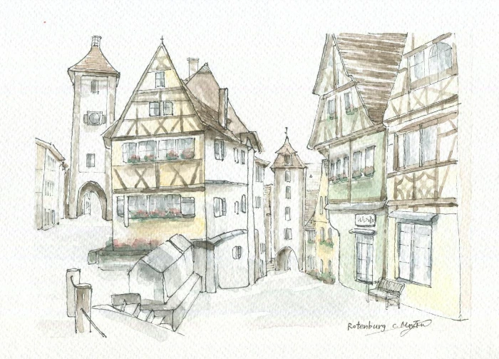 흐르는 길에 한 줌 기억을 그리다(수채 펜드로잉)