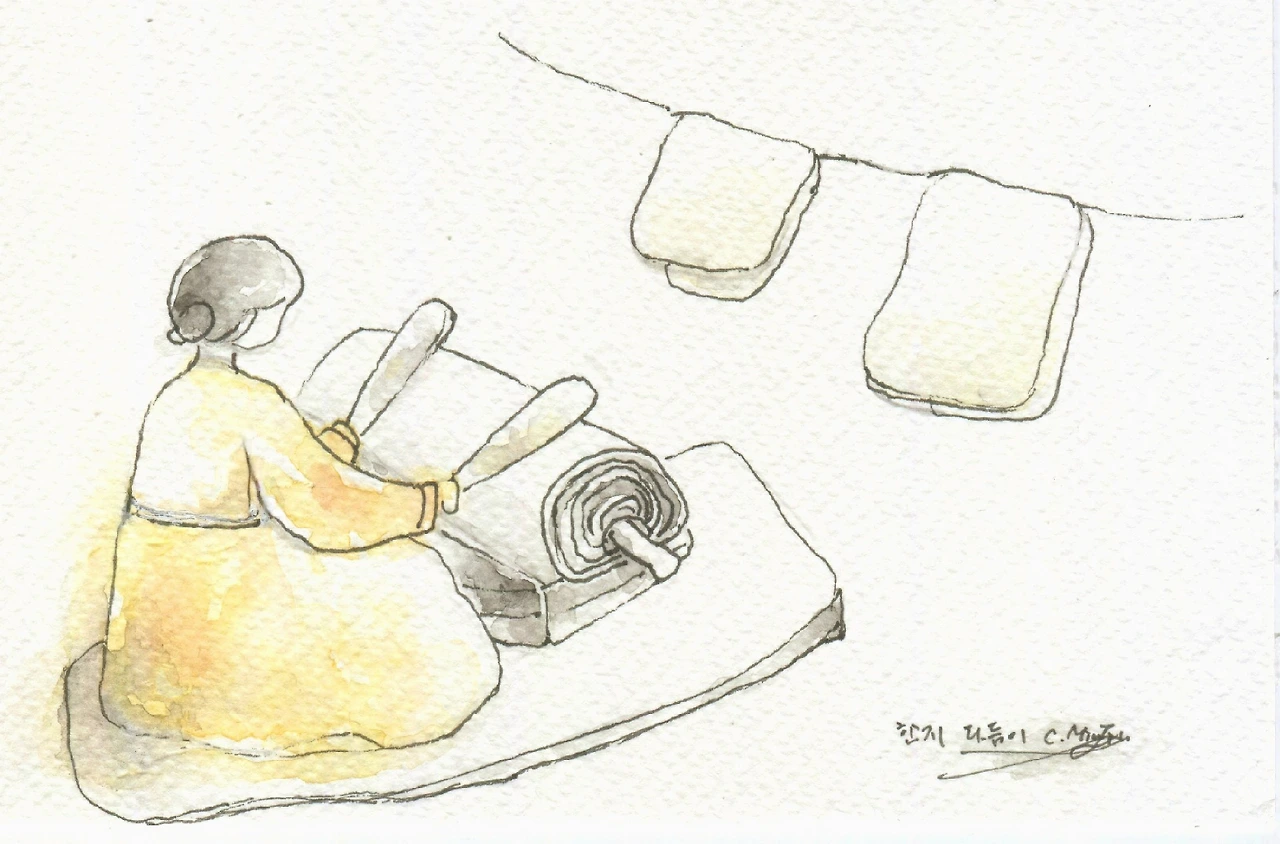 (한지 다듬이질, 원주 한지역사실 자료참고)