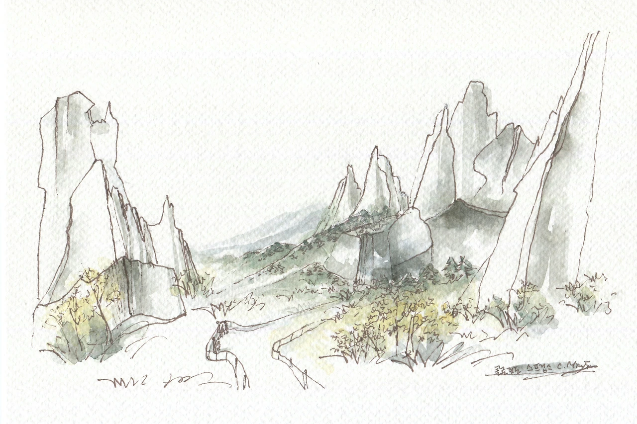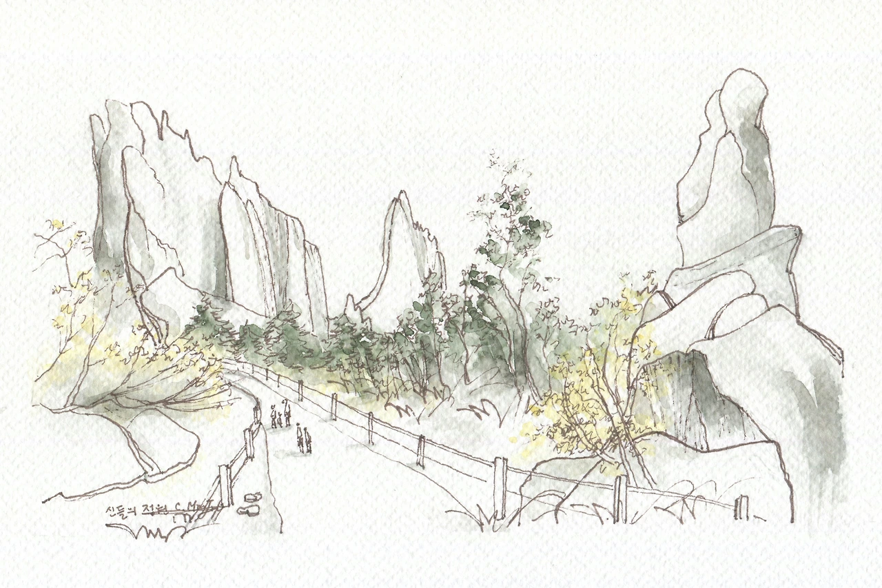 구릉 흩어진 자락에 집들 모여 앉는다.