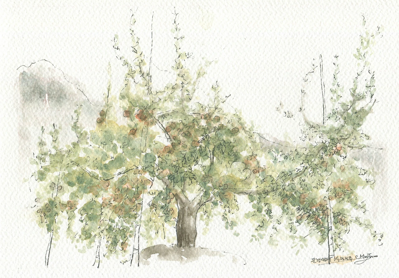 열매 가득한 나무 곁으로