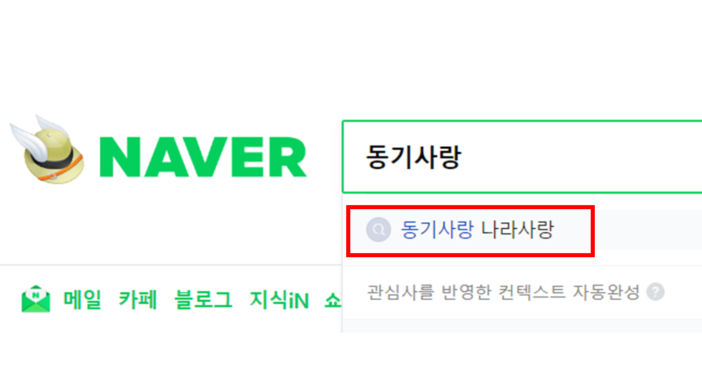 만약, 저처럼 ○○(땡땡)의 공란에 [동기사랑]이 생각나신 분이 있다면, 요즘 세대랑 거리가 먼 낭만의 세대(?)에 속하실 것 같군요^^. 자동완성으로 나오는 "동기사랑 나라사랑"이란 말을 실제로 학창 시절에 자주 들으면서 자랐던 기억이 납니다. (물론, 보통 단체 기합 같은 것을 받을 때 들었던 말이지만 ㅠㅠ)