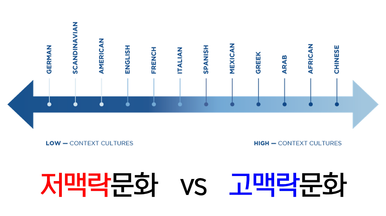 먼저, 저는 예전에 에드워드 홀(Edword. T. Hall)『문화를 넘어서』(1976)의 저맥락 문화와 고맥락 문화를 비교하면서, 서양권 문화와 동양권 문화(우리 사회에 해당하는)의 문화적 차이를 설명드린 바 있습니다.