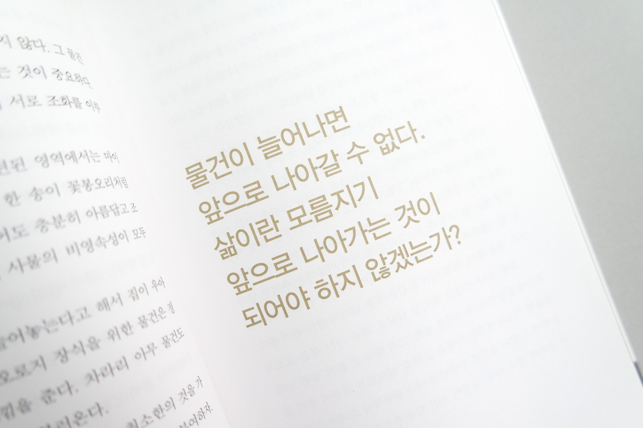 값어치에 몰두하다 정작 우리가 놓친 것이 있습니다.애초에 이걸 왜 구입했는지 생각해볼 일이에요. 정작 용도에 맞는 물건은 모셔두고 같은 용도의값싼 소모품들을 늘려 나가며 사용하는 편이 효율인지, 값이 나가는 대신 사용하기 용이한 물건을 한두개만 들여 손을 댈 때마다 만족을 느끼며 오래 쓸 것인지 말입니다. 사용이 까다로운 값비싸기만 한 물건은그러니까 들일 이유가 전혀 없습니다. 값은 비싸지만 하나만 구입해도 오래 쓸 물건은 사치가 아니니까요. 손 닿는 곳마다의 물건들이 모두 그런 것들로만 이루어져 있다면 날마다 체감할 삶의 풍요로움은 어떨지 상상만으로도미소가 지어집니다.