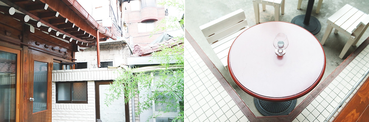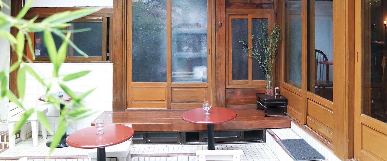 입구로 발을 디디는 순간 전혀 새로운 시공으로 빨려 들어가는 기분을 경험할 수 있다. 익숙한 나무의 색, 마당 있는 집의 제멋대로 자란 잎사귀들, 그러나 어디 한 군데 사람 손이 닿지 않은 곳이 없는 반질반질한 가정집의 그것. 낯설지만 그리 생경할 것도 없는 옛 주택의 모양새이지만 의외로 내부는 모던한 응접실의 모습을 취하고 있었다. ‘모-단 modern’이라는 텍스트가 머릿속을 스친다. 바닥에 깔린 타일의 무늬를 훑던 시선이 홀로 놓인 테이블에 부딪혀 멈췄을 때 테이블 기둥의 섬세한 디테일에 또 한번 감탄하고 말았다. 조금 더 안쪽에 놓인 바 bar 역시 그 나름의 분위기가 또 달라 이곳은 혼자 오든 둘이 오든 여럿이 오든 앉는 다른 공간을 누리는 재미가 있겠다.