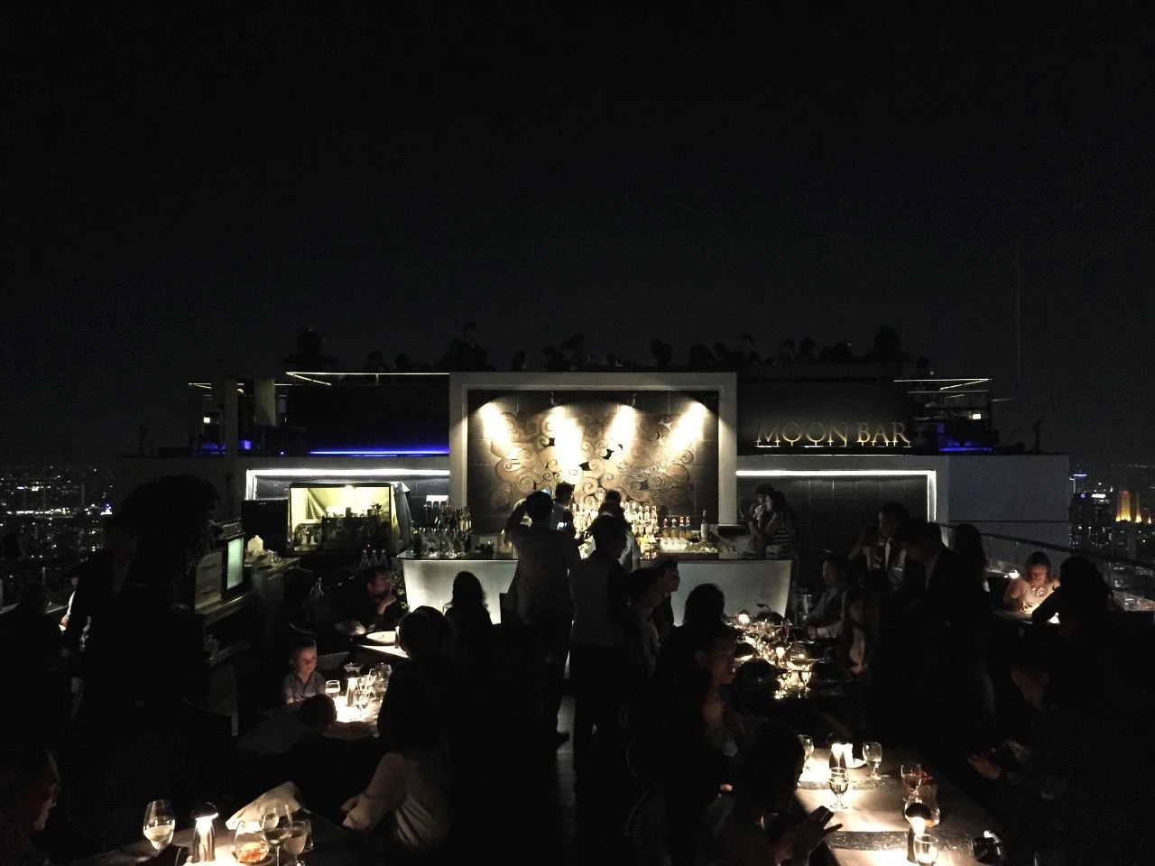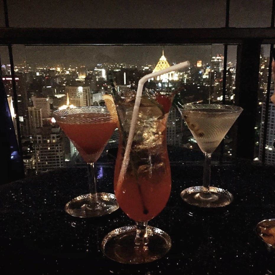 숙소로 돌아가 서둘러 고기 냄새를 씻어내고 한껏 멋을 부려본다. 고된 일정에 절어 있던 청춘은 온데간데없고 다들 반짝반짝 빛이(착각이면 어떠랴) 난다. 그래 어쩌면 오늘 우리가 가는 이 루프탑 바야 말로 여행의 정점을 찍는 순간일지도 모르니까. 기분 좋은 밤바람을 맞으며 도착한 반얀트리 호텔은 벌써 이용객들로 북적였다. 그렇게 엘리베이터를 타고 가장 높은 층인 59층을 누르자 귀가 먹먹할 정도로 순식간에 호텔의 최고층에 도착한다.