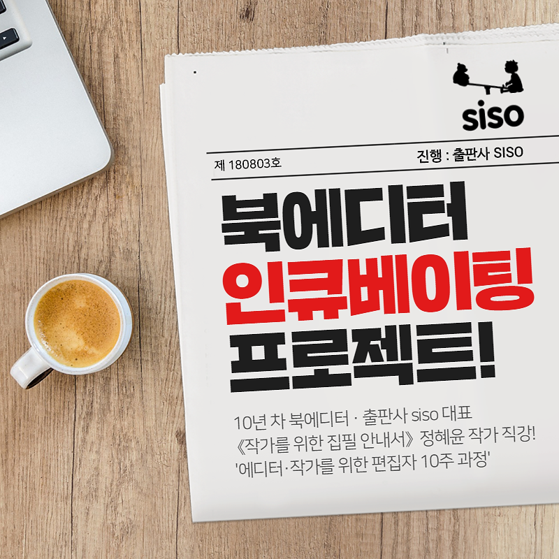 신입 출판 편집자로 활동하고 싶은 분들께는 출판사 siso 편집자로 채용 기회를 드립니다.