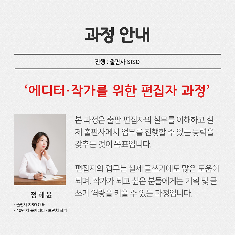 평소 출판 편집자·글쓰기에 관심 있으셨던 분들이라면 좋은 기회가 되실 겁니다.