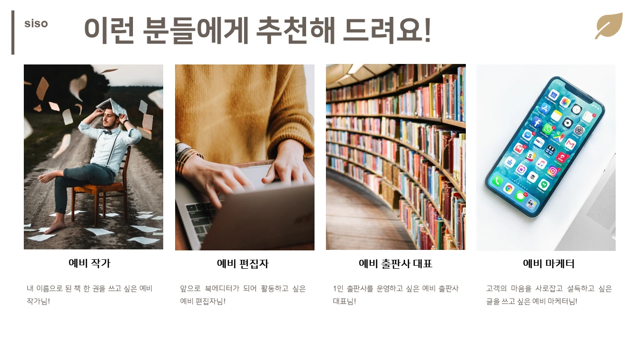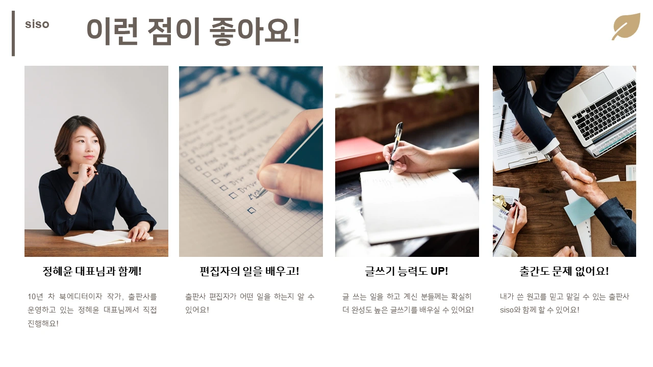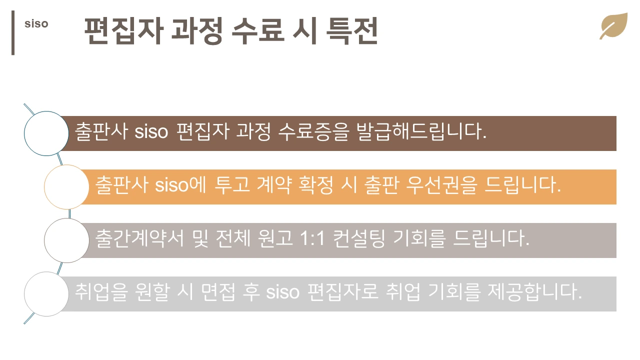 신입 출판 편집자로 활동하고 싶은 분들께는 출판사 siso 편집자로 채용 기회를 드립니다.