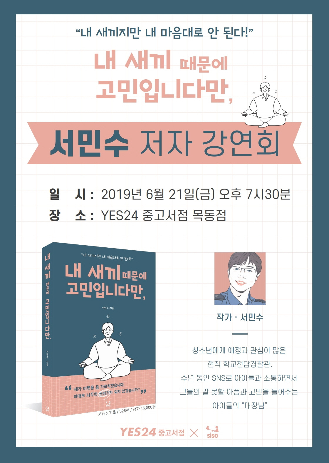 더불어 강연이 끝난 후 서민수 작가님의 저자 사인회도 진행되오니 도서 《내 새끼 때문에 고민입니다만,》를 꼭 지참해주세요! 물론 도서는 현장에서도 구입이 가능합니다 :D