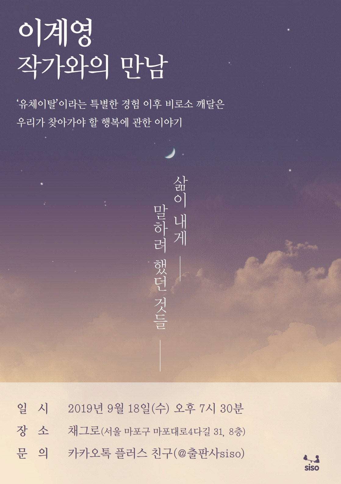 2019년 4월 출판사 SISO를 통해 출간된 이계영 작가님의 《삶이 내게 말하려 했던 것들》에 많은 관심과 응원을 보내주신 모든 독자분들께 감사드립니다.