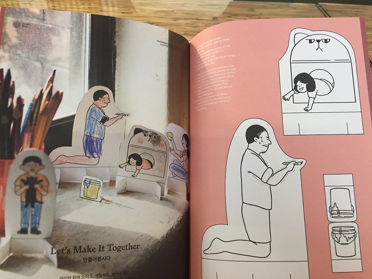 그런데 지금 이 잡지는 직접 고르지 않았다. 어쩌다 지인의 선물로 내 손에 쥐어졌다. 이전에 접한 적은 있지만 내가 읽을 잡지는 아니라고 여겼다. 바로, '아빠를 위한 잡지'라는 카피를 보고 말이다. 그저 '힙한 잡지네! 그런데 이런 걸 보는 아빠들이 많으려나?' 하고 가볍게 넘겼다. 첫인상이 낯설었기에 모든 게 어색했다. 어두운 분홍빛 표지사진, 한국어와 영어 텍스트가 함께 실려있는 콘텐츠. 글을 읽기도 전에 묘한 경계심만이 자리했다.