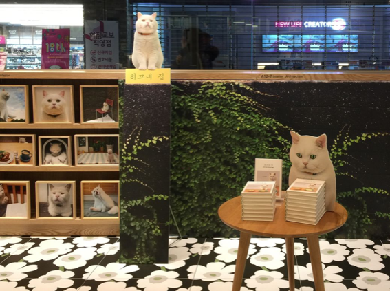출간 기념행사로 히끄 사진전을 기획했는데 호응이 좋았습니다. 고양이 ‘히끄'의 등신대를 직접 만들어서 포토존을 꾸미고, 히끄 발바닥 본을 떠서 발도장도 직접 만들어서 전시했는데 방문객들이 많이 사랑해주셨어요. 반응이 워낙 좋아 서점 순회 전시도 하고 알라딘, 인터넷 교보문고와 컬래버레이션을 통해 히끄 굿즈를 제작하기도 했어요.
