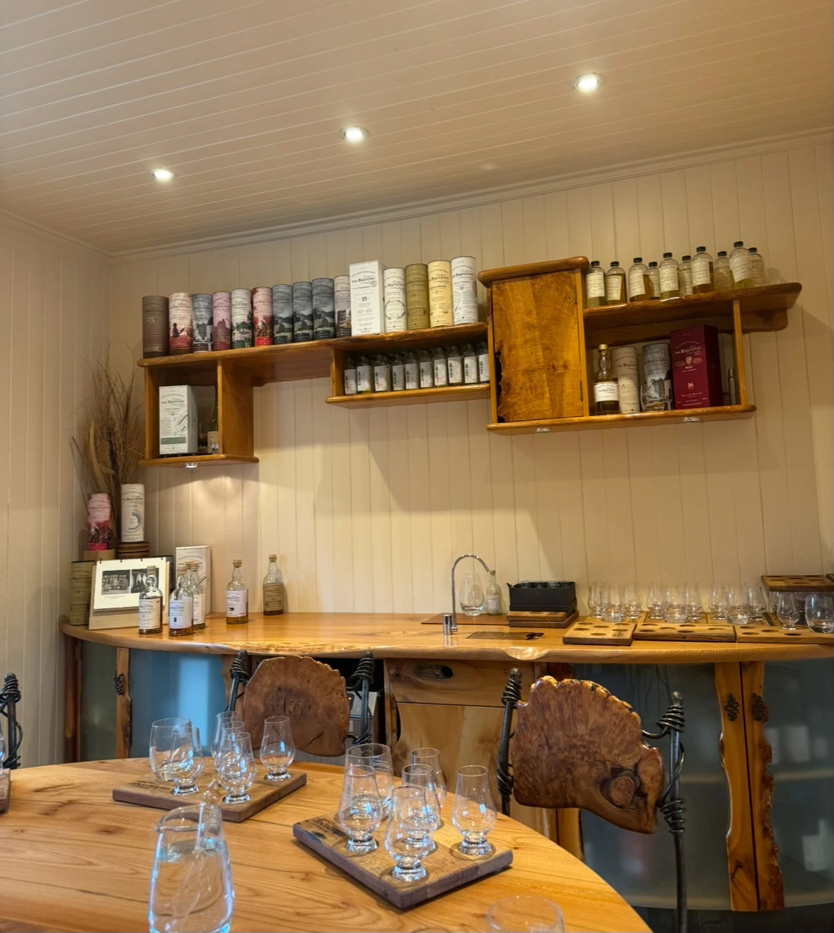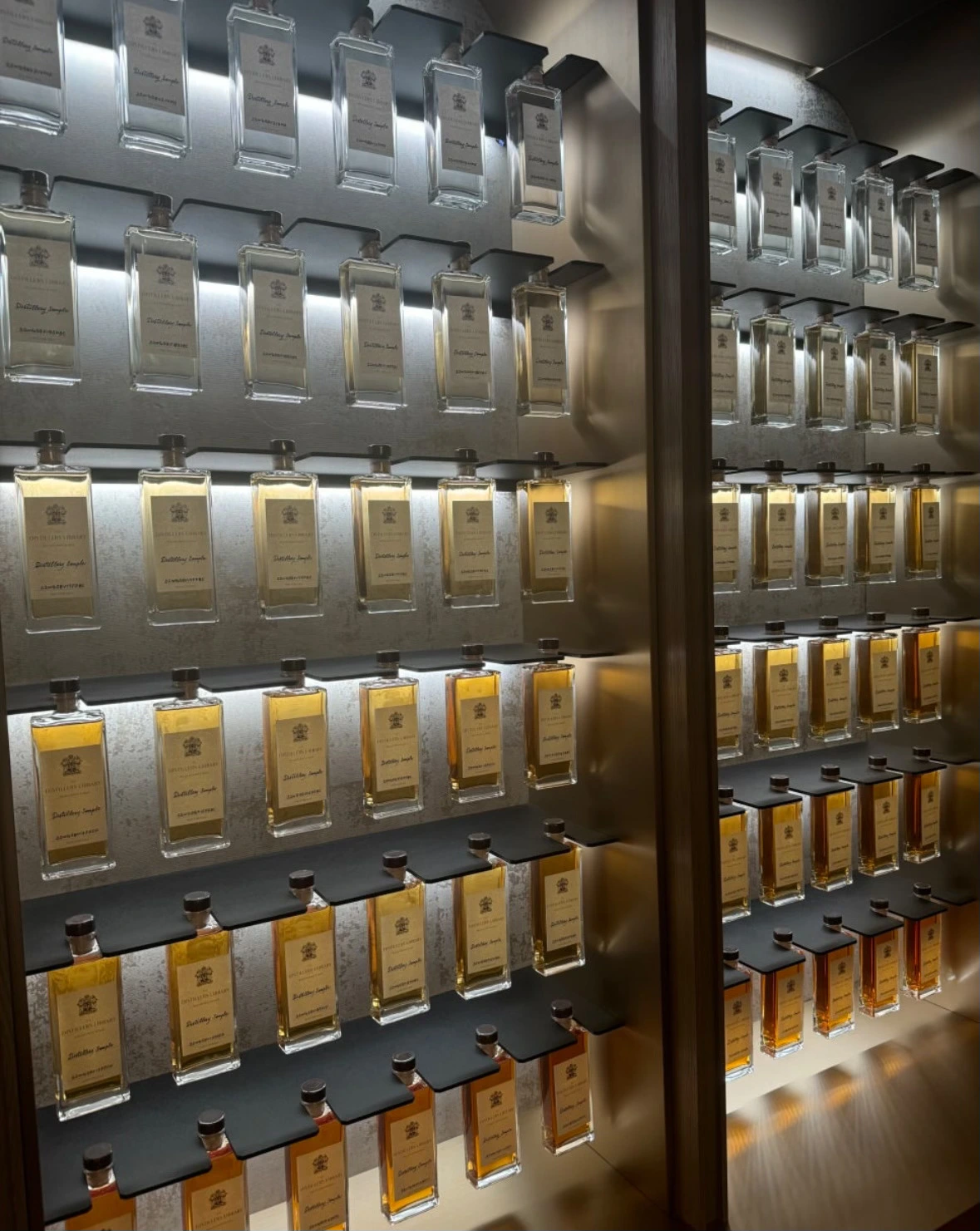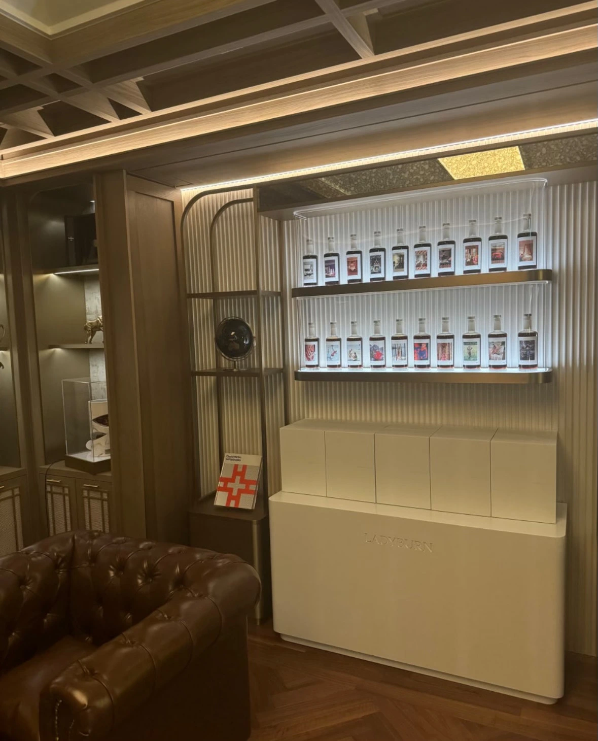 서울 신라호텔 1층에 설치된 디스틸러리 라이브러리. 서울신라호텔이 윌리엄그랜트앤선즈코리아와 협업해 프리미엄 위스키 특화존 ‘더 디스틸러스 라이브러리’를 2024년 선보였다. 두 번째 사진은 발베니의 형제 증류소였다가 1970년대 중반 문을 닫은 증류소인 Ladyburn 위스키 사진이다.