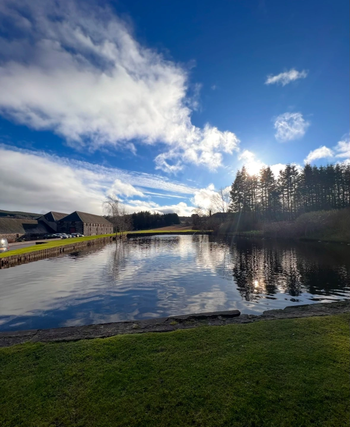(좌) 2023년 11월에 찍은 발베니 증류소 외부 풍경 (우) 2023년 2월에 찍은 발베니 증류소의 연못