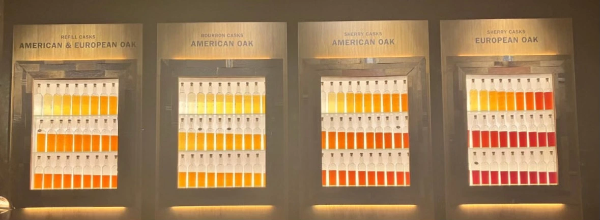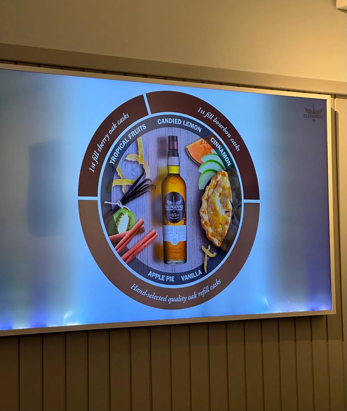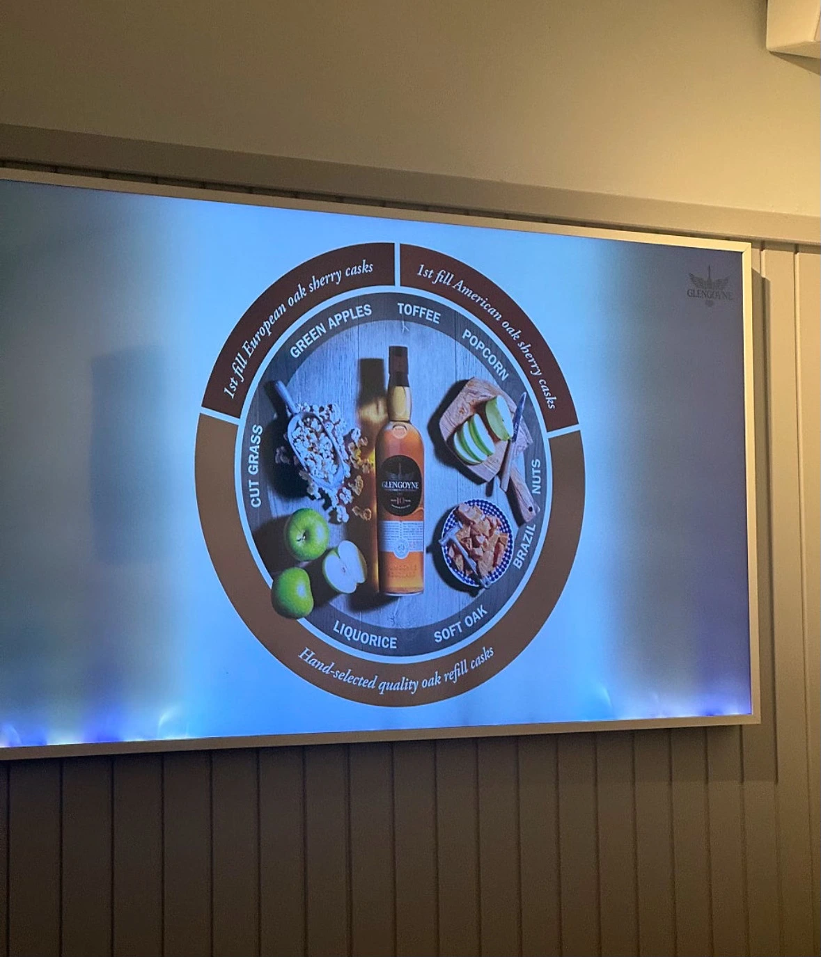 글렌고인 테이스팅 룸과 시음할 때마다 화면에 띄워진 플레이버휠
