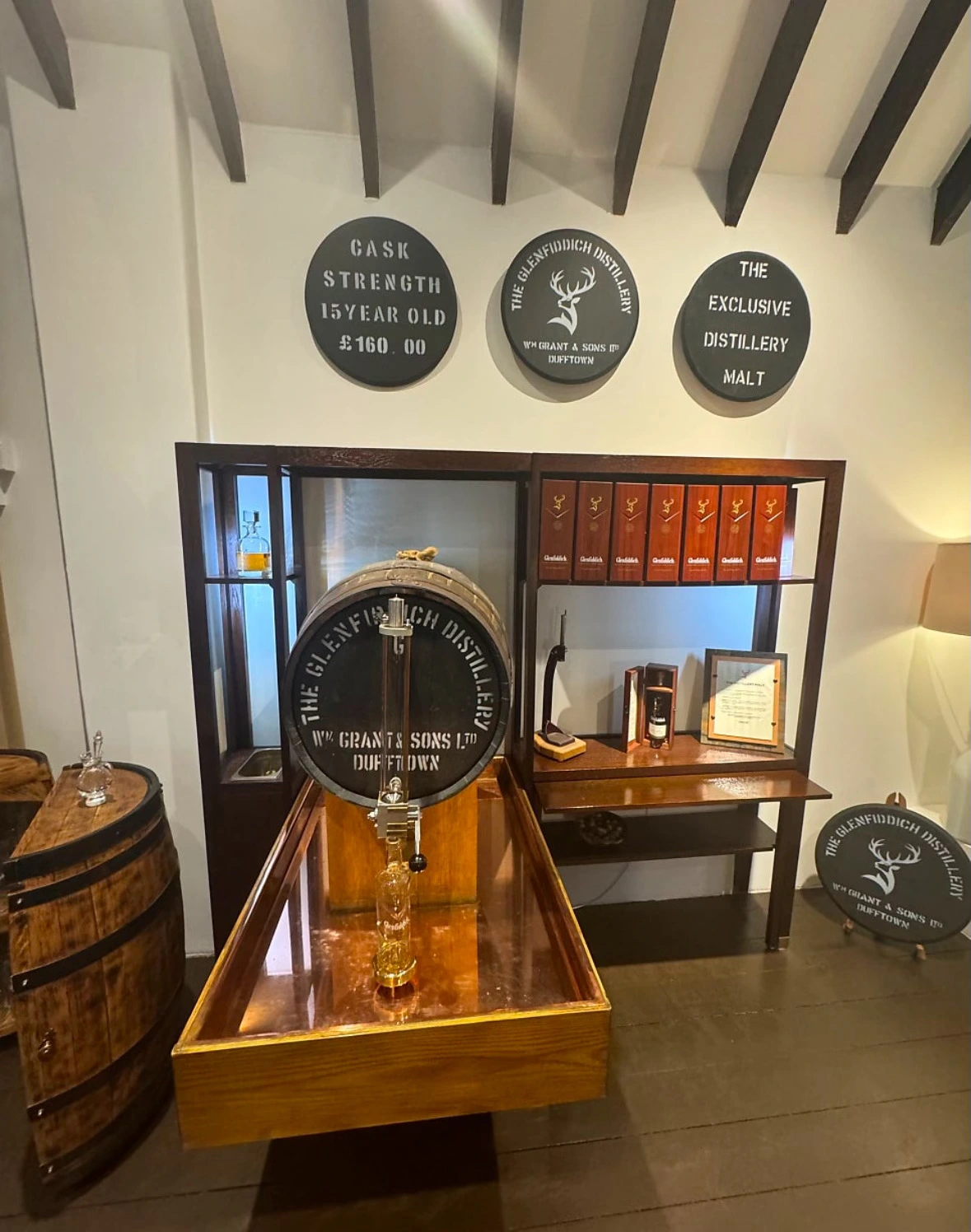 글렌피딕 기념품점과 테이스팅 룸 내부 모습