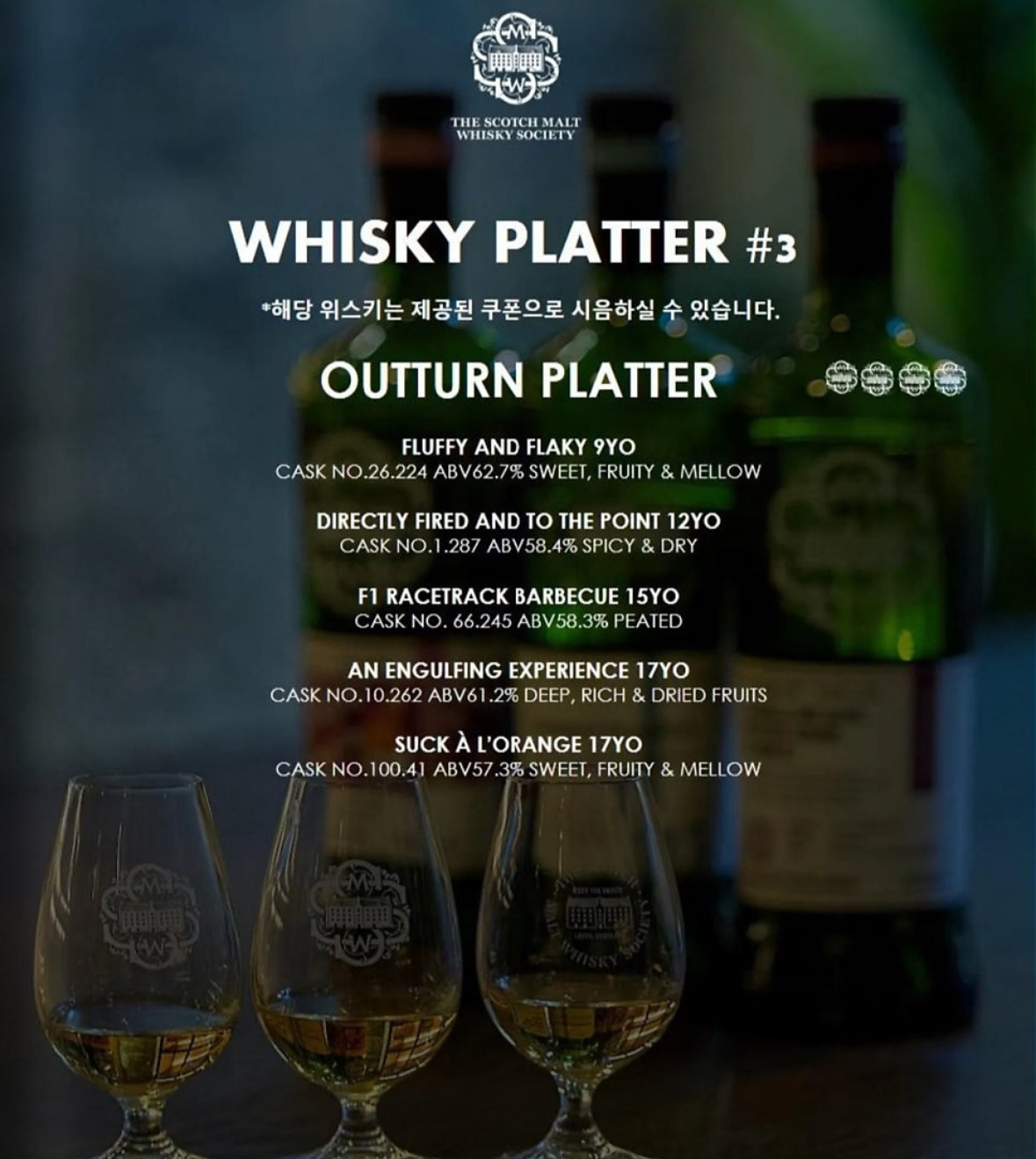 2024년 디오니 주류 박람회에서 진행된 SMWS 세미나에 참여하며, 세 가지 위스키를 테이스팅했습니다.