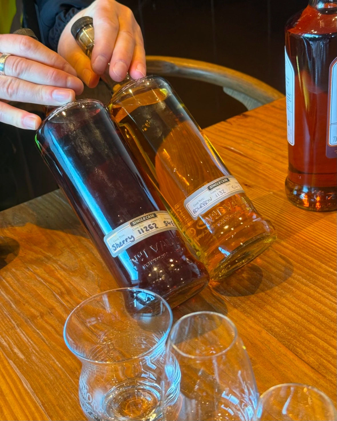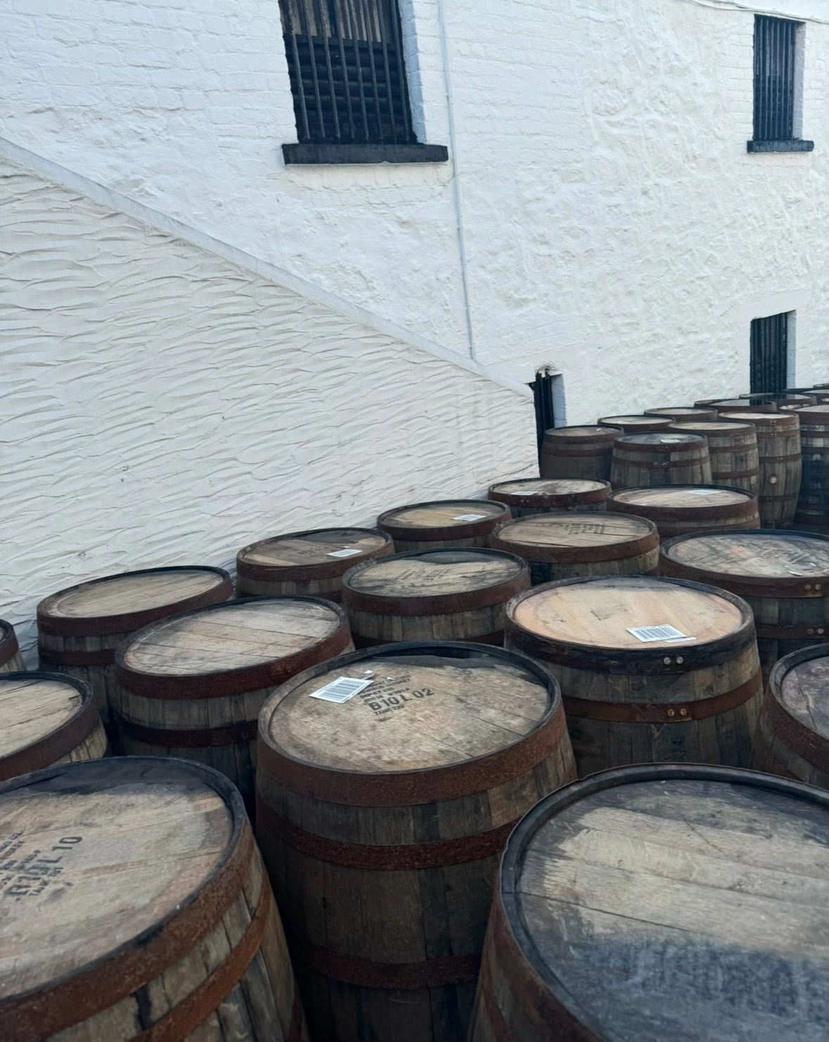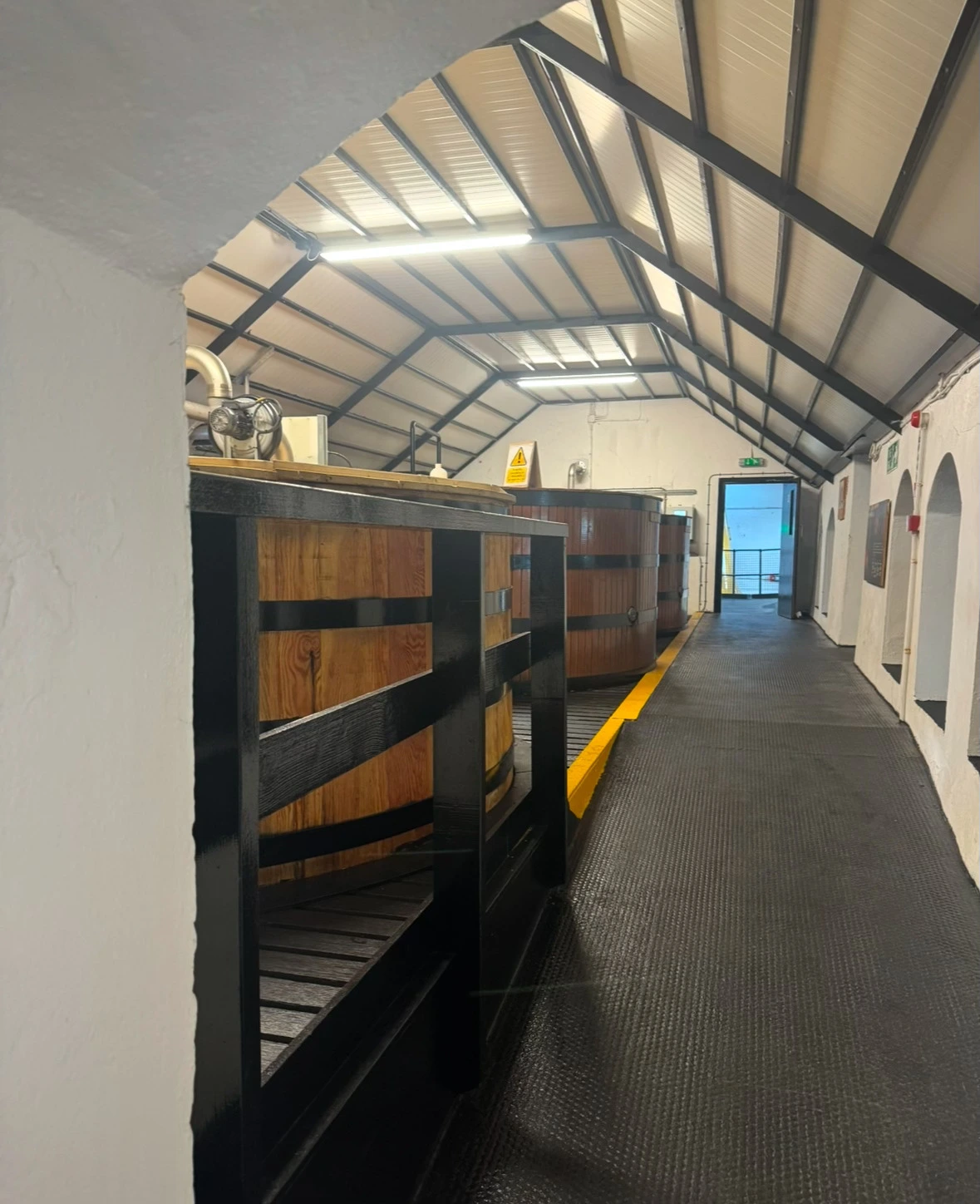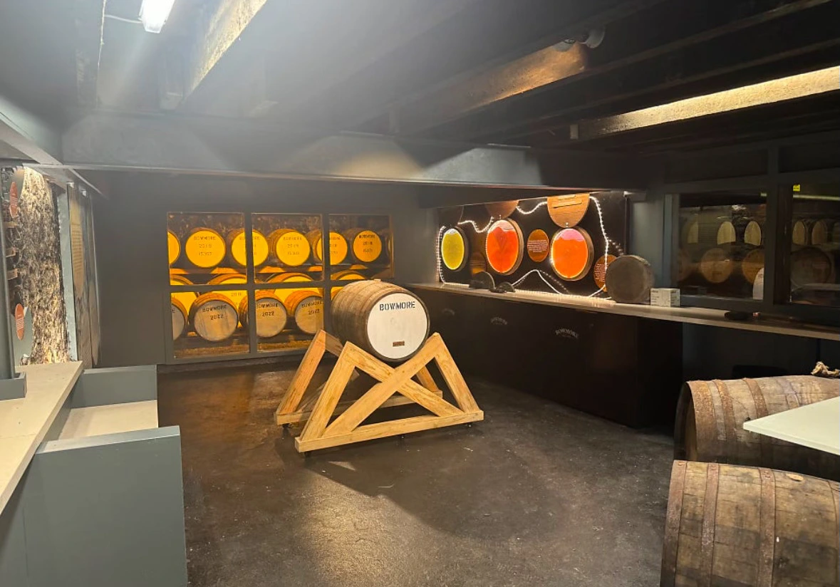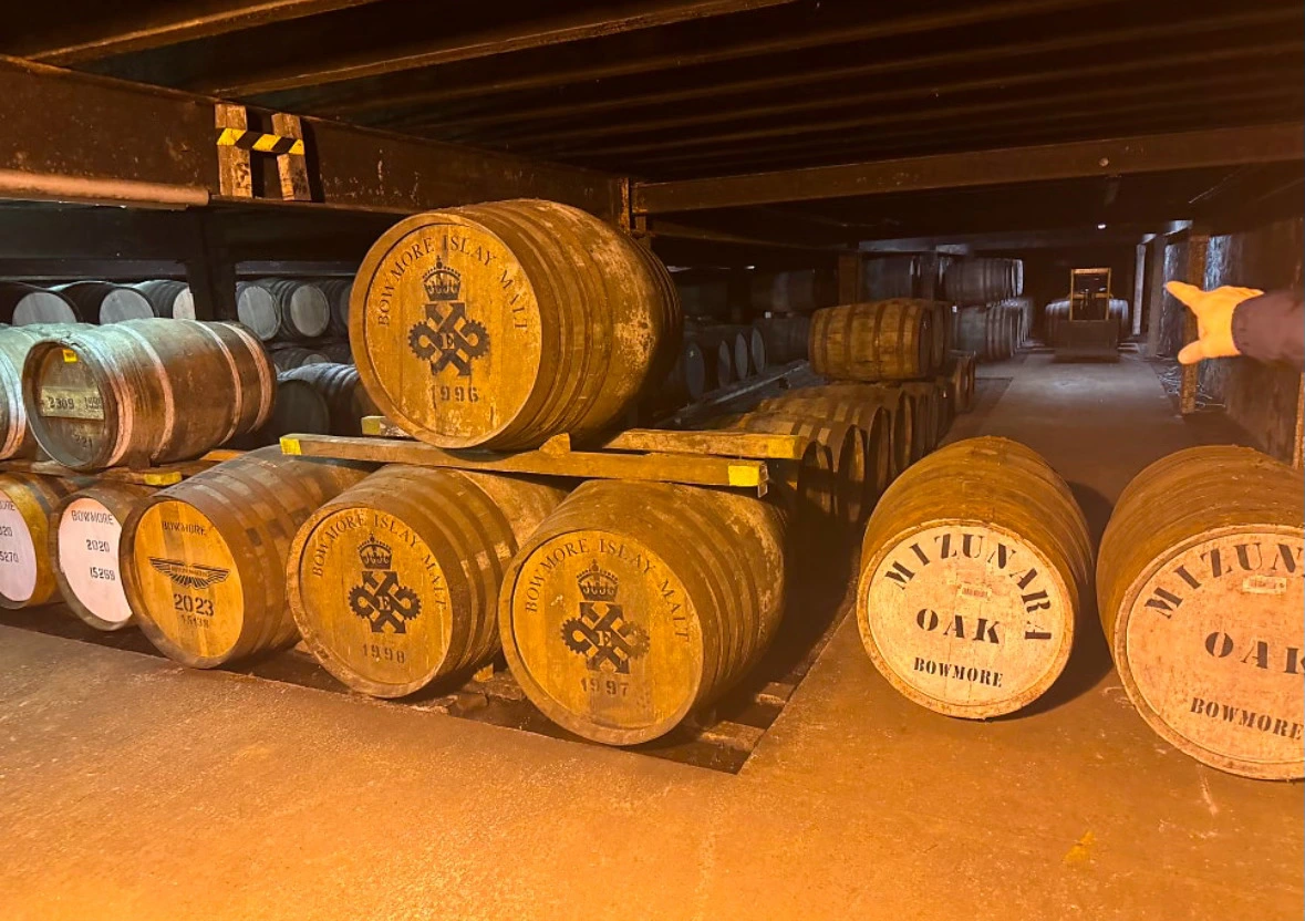 보모어 숙성고 입구와 그 내부. 숙성고 입구에 전시실(우)이 마련되어 있다. 산토리 소유 증류소여서 그런지 일본의 미즈나라 캐스크도 발견할 수 있었다.