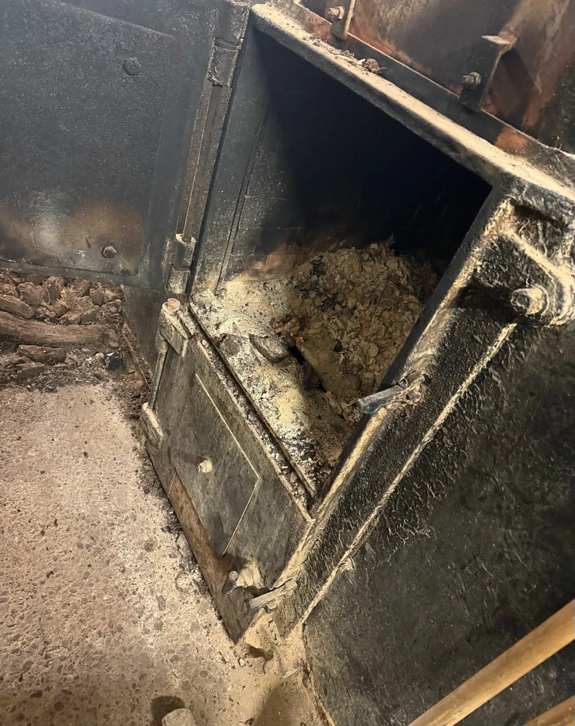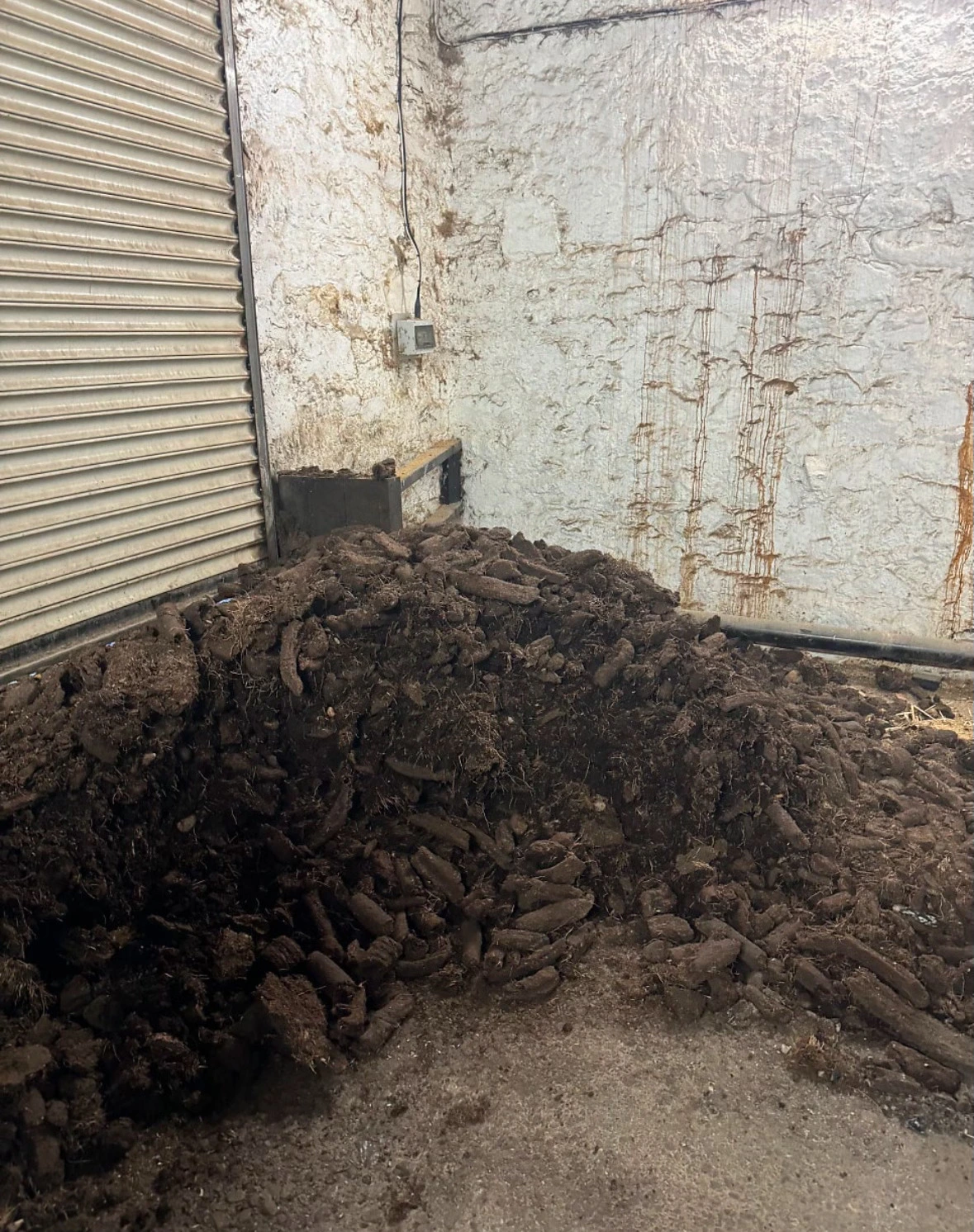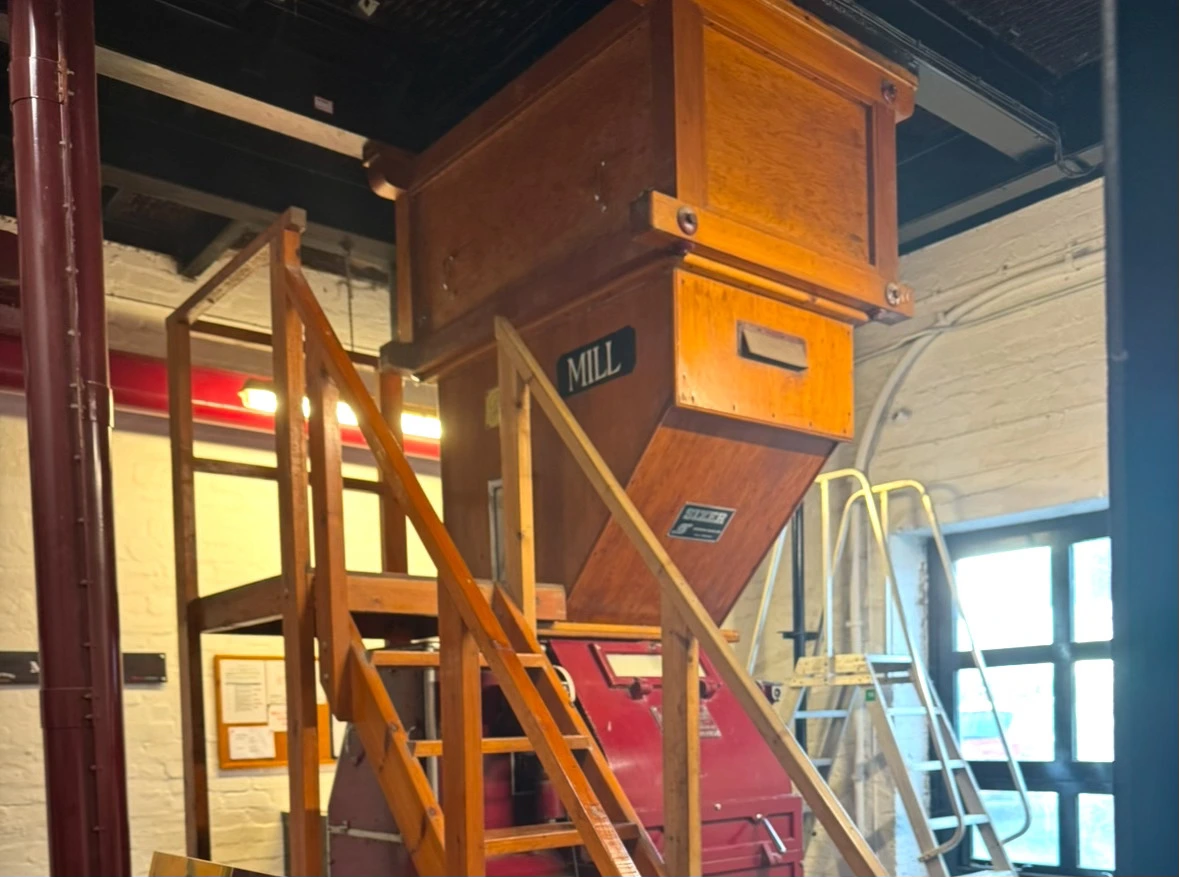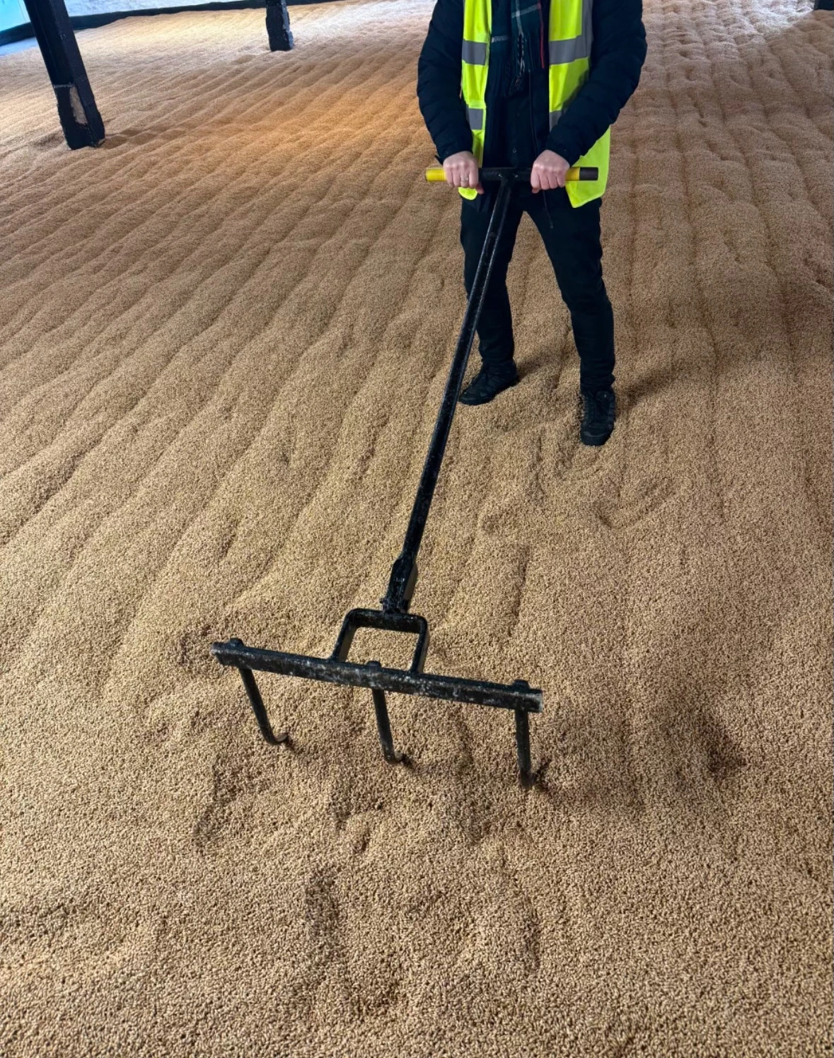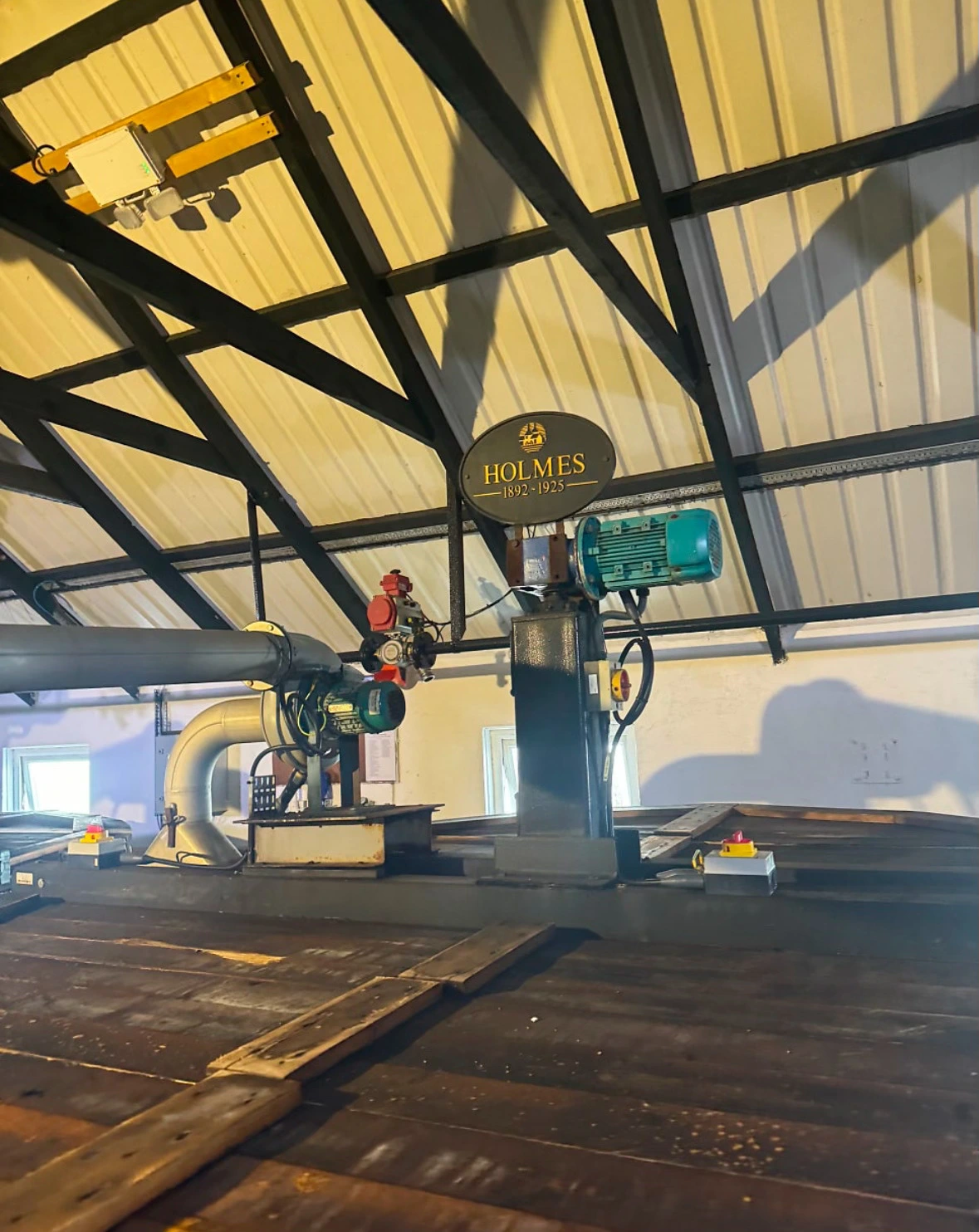 보리를 뒤집는 쟁기. 우리가 방문했을 때 기계는 쉬고 있었다.