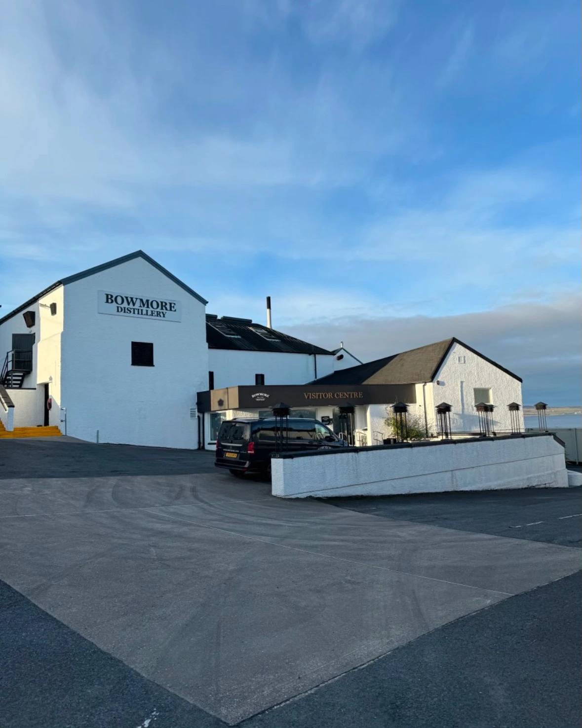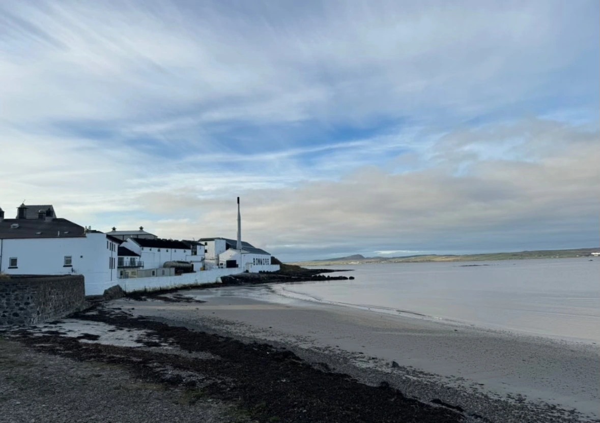 한적한 바닷가가 아름다운 마을에 위치한 보모어 증류소 건물