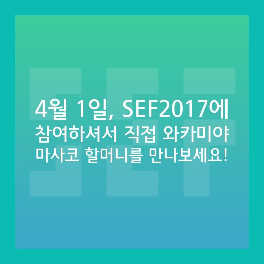 SEF2017에 참여하시면 와카미야 마사코 할머니의 이야기를 직접 들을 수 있음을 알리며 카드뉴스가 끝이 난다.