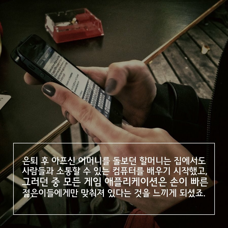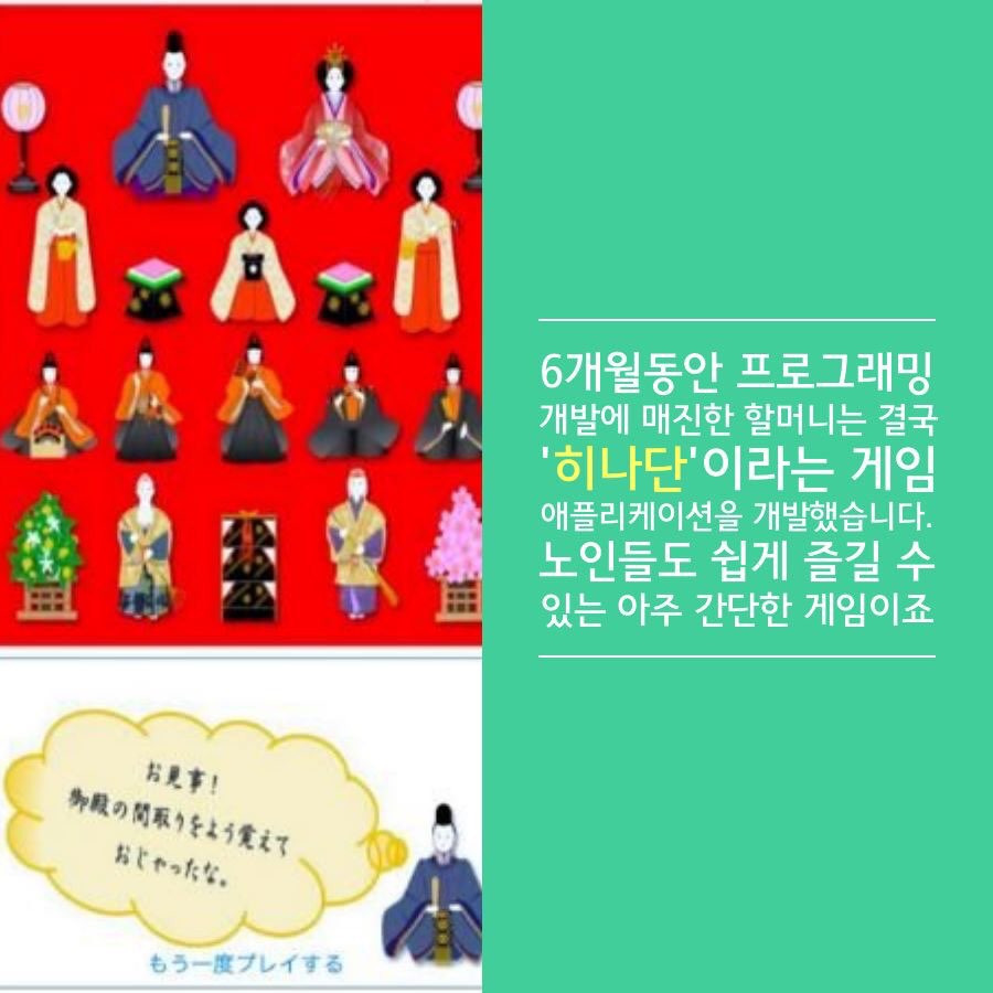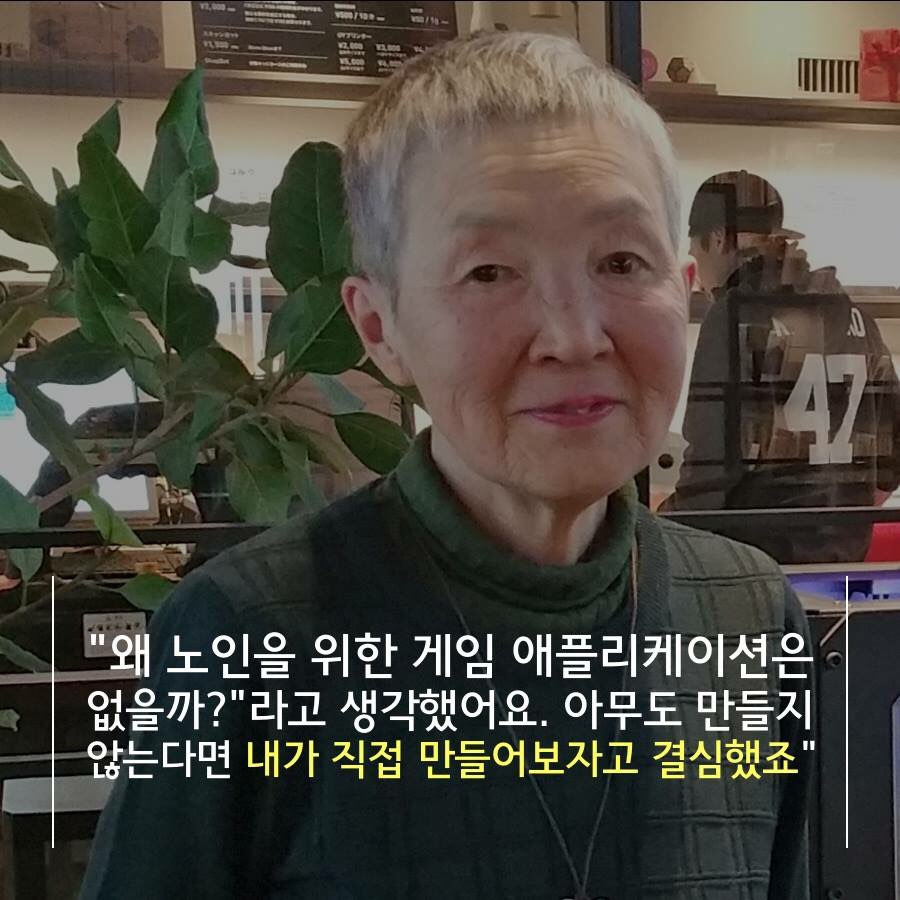 그 다음 할머니가 게임 앱을 만들게 된 동기에 대해 좀 더 자세하게 설명했다. 약간의 불편함을 그냥 지나치지 않고, 직접 나서서 앱을 만들었다는 와카미야 마사코 할머니의 이야기는 전 세계에서 손꼽히는 특별한 이야기이기 때문이다.