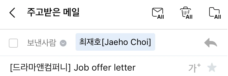 성의가 듬뿍 담긴 letter를 받은 다음날 아침, 몇 번을 쓰다 지우다를 반복하다 답장을 보냈다. 그리고 불과 몇 분 후 답장이 도착했다. 이로써 나는 삼성, 구글 직원들도 이직한다는 그곳에 이직했다. 유독 뜨거운 여름이었다.