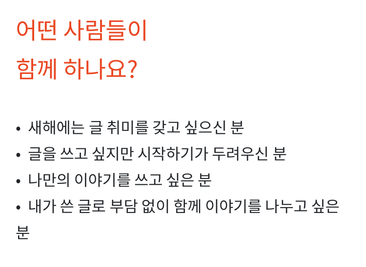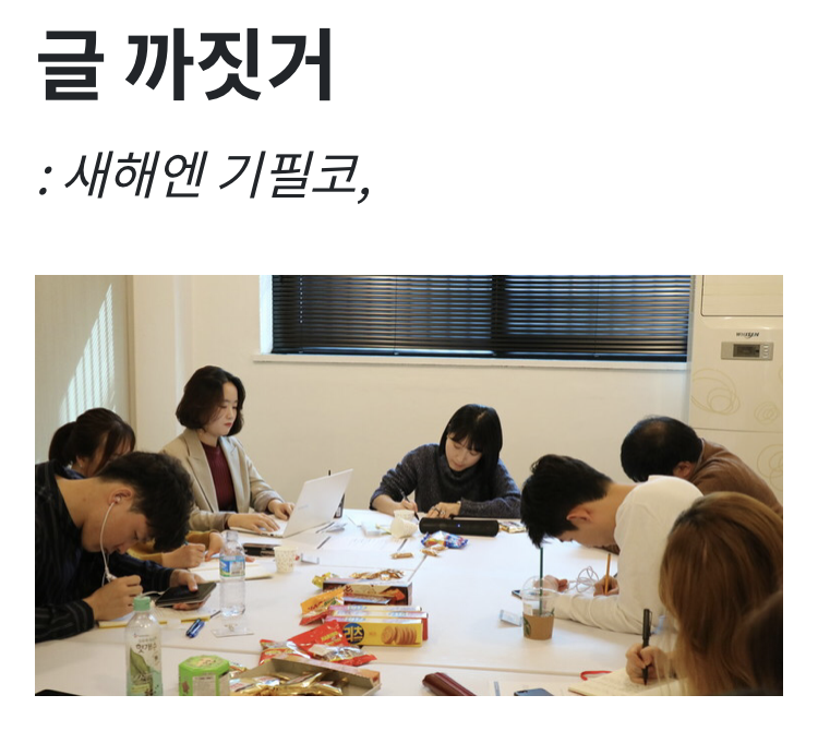 언젠가 사람들과 모여서 함께 글을 쓰고, 글에 대해 이야기를 나눠보고 싶다는 막연한 생각을 갖고 있었어요. 어디서부터 어떻게 시작해야 할지 몰라 일단, 버킷리스트에 적었습니다. 그래야 어떻게든 이루어진다는 것을 아니까요. 2019년의 막바지, 결국 이 꿈은 이루지 못하고 올해가 끝나겠구나 생각할 때쯤 생각지 못한 기회를 만들게 되었습니다. 바로 내년, 새해부터 '문토'라는 취향 모임 공동체에서 '글 까짓 거'라는 이름으로 글쓰기 모임을 엽니다.