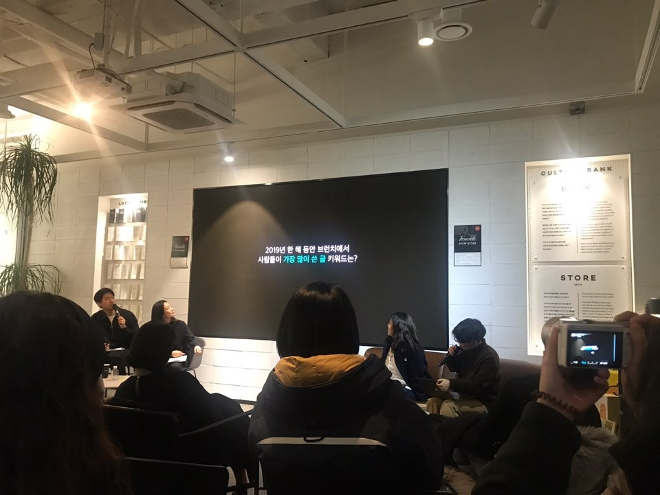 오프라인에서의 브런치는 온라인에서의 브런치와 크게 다르지 않았습니다. 행사는 강남역에 있는 29cm 스토어에서 열렸지만 개인적으로 브런치에서 느껴왔던 특유의 편안함과 아날로그 감성이 소박한 행사장에서 그대로 느껴졌어요. 심지어 브런치에서 일하시는 분들에게서도 브런치의 분위기가 그대로 묻어났어요. 브런치의 김혜민 마케터님과 기획·제휴를 담당하는 김주영 님의 솔직하면서도 또박또박한 답변이 '브런치답다'라고 느껴져 부러웠습니다.