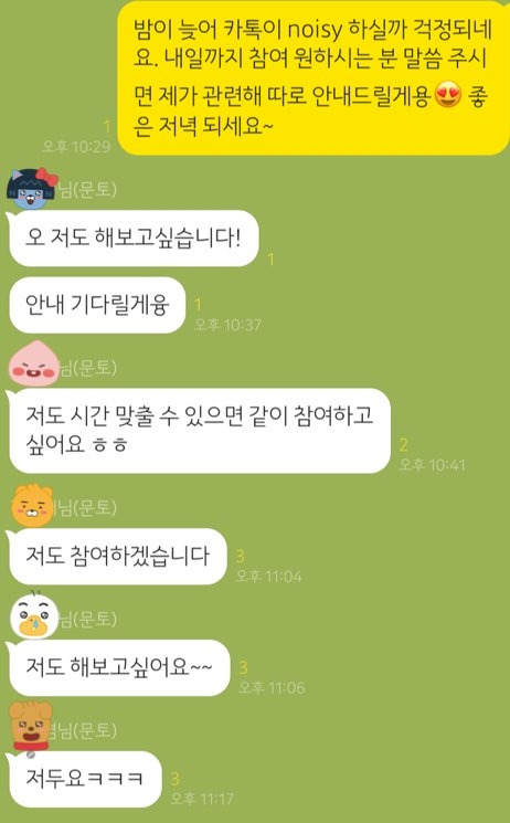 멤버 분들과의 단체 카톡방에 메시지를 보냈다.