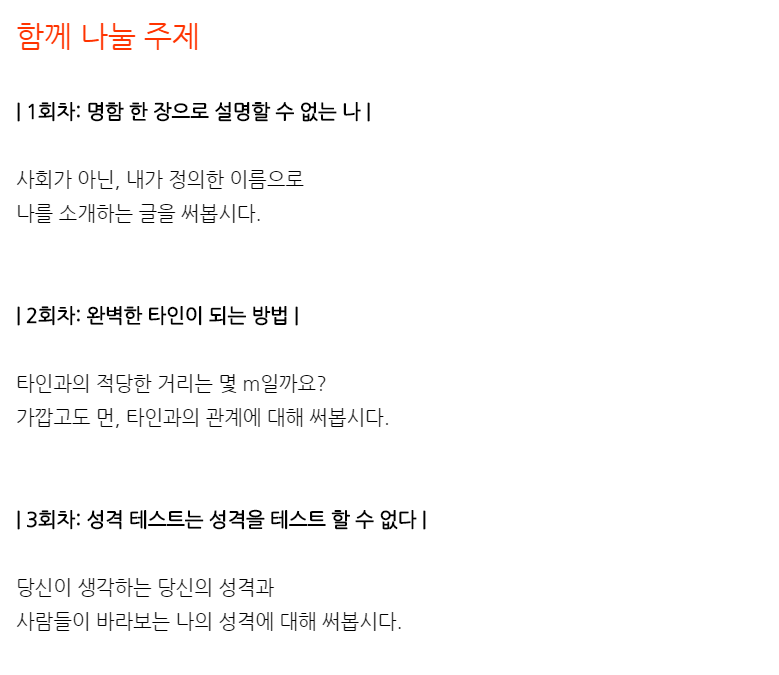 시즌1 모임에 참여해주셨던 한 멤버 분께서는 이런 후기를 남겨주셨는데요.