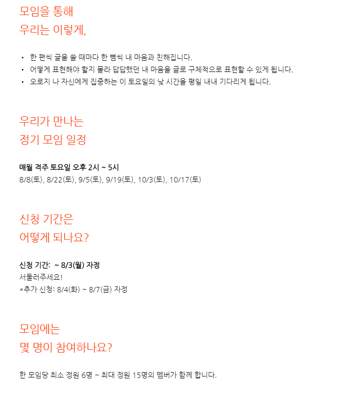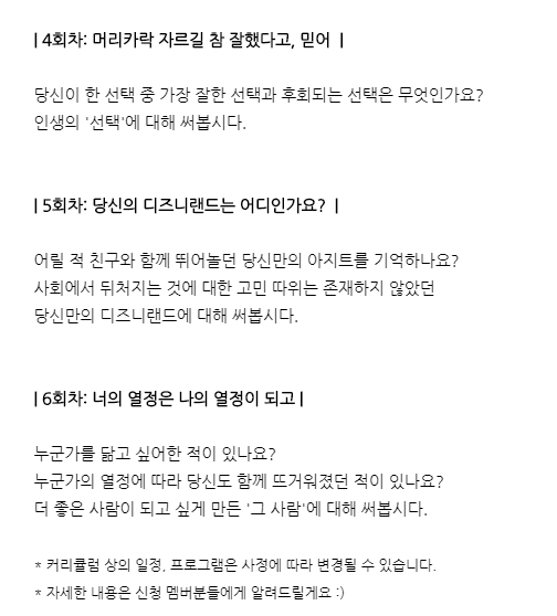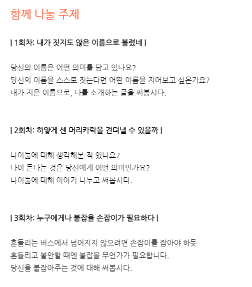 글쓰기 주제 및 모임 관련 자세한 사항은 아래 링크를 통해 확인하실 수 있습니다.