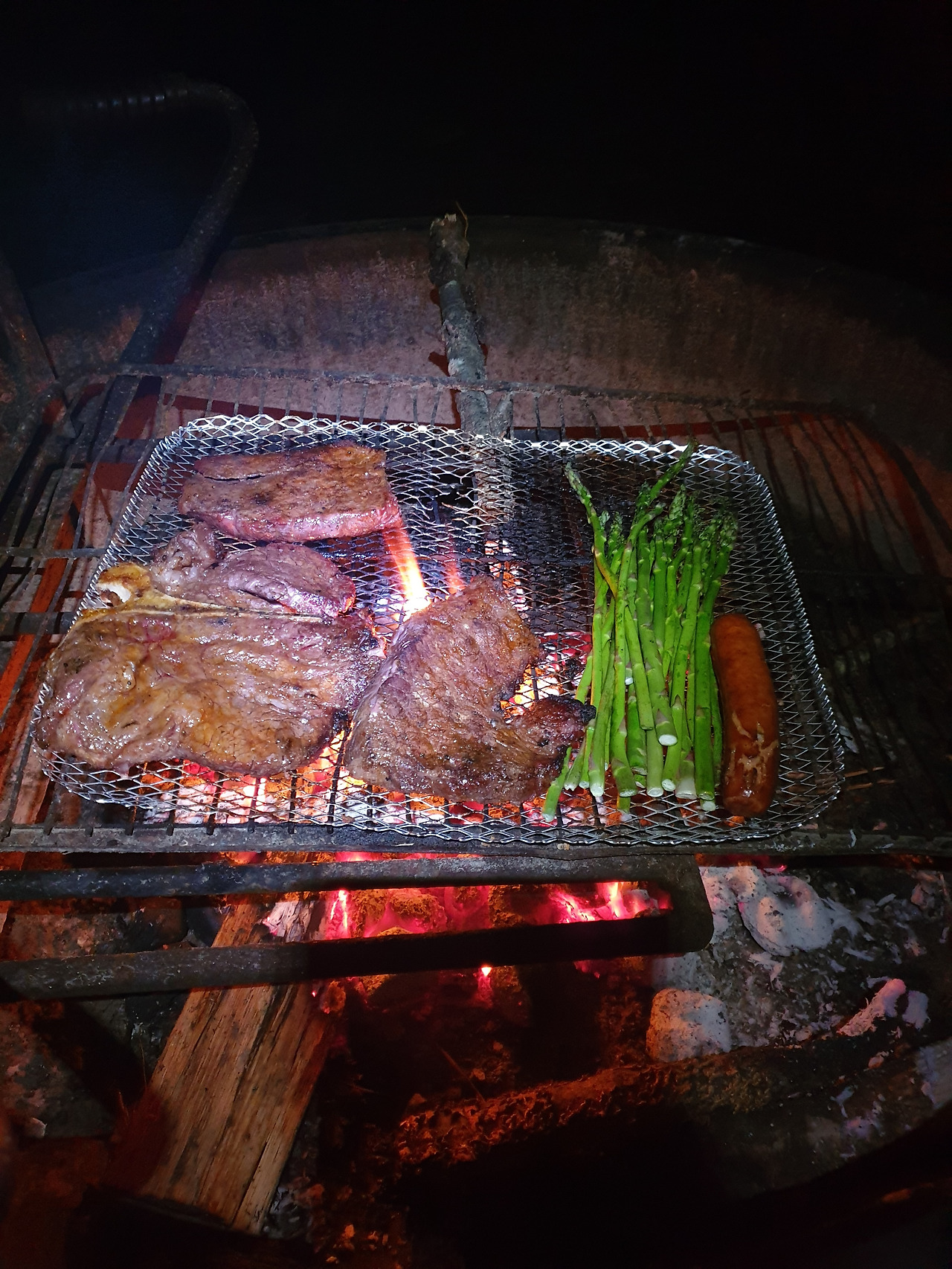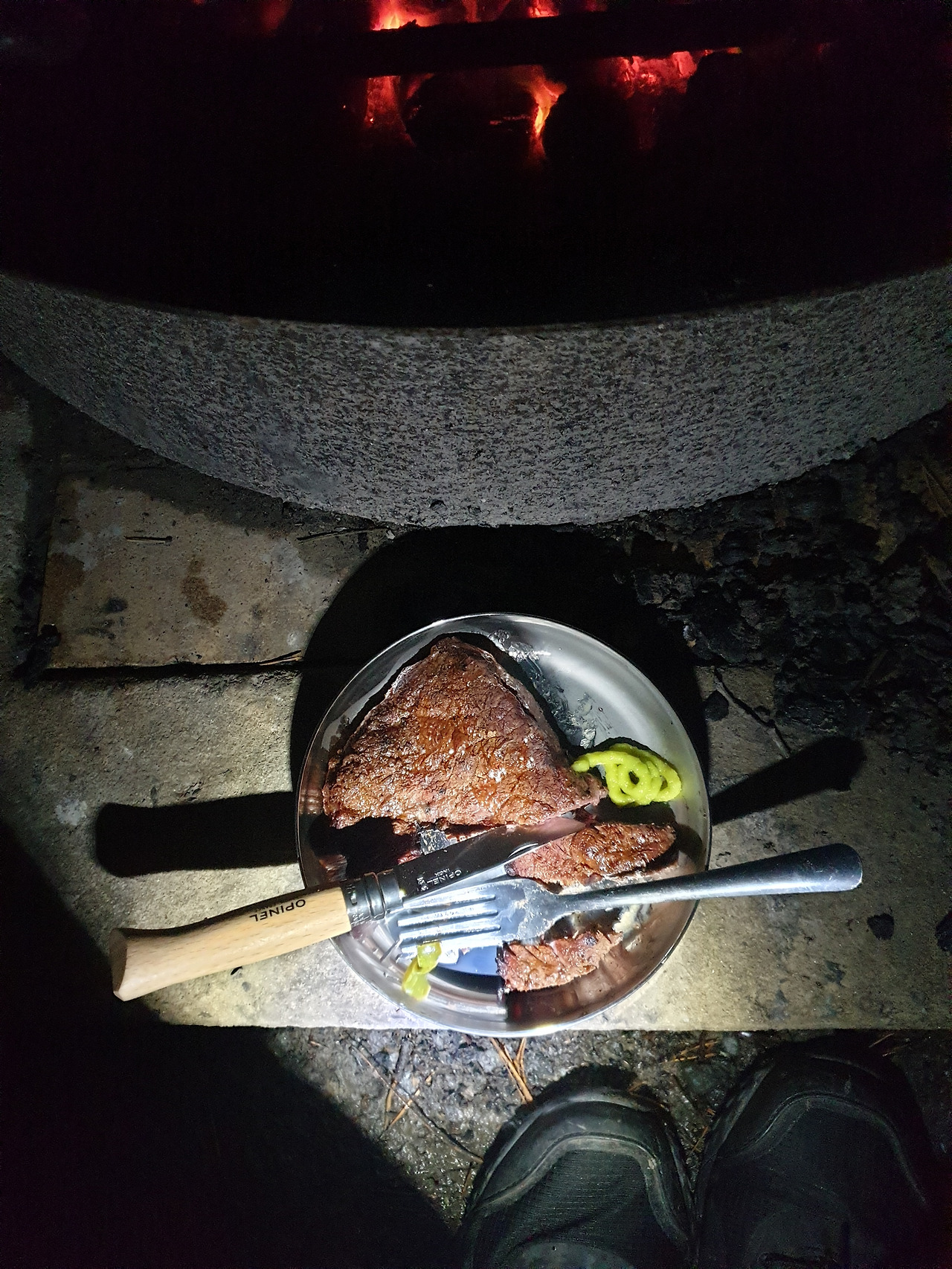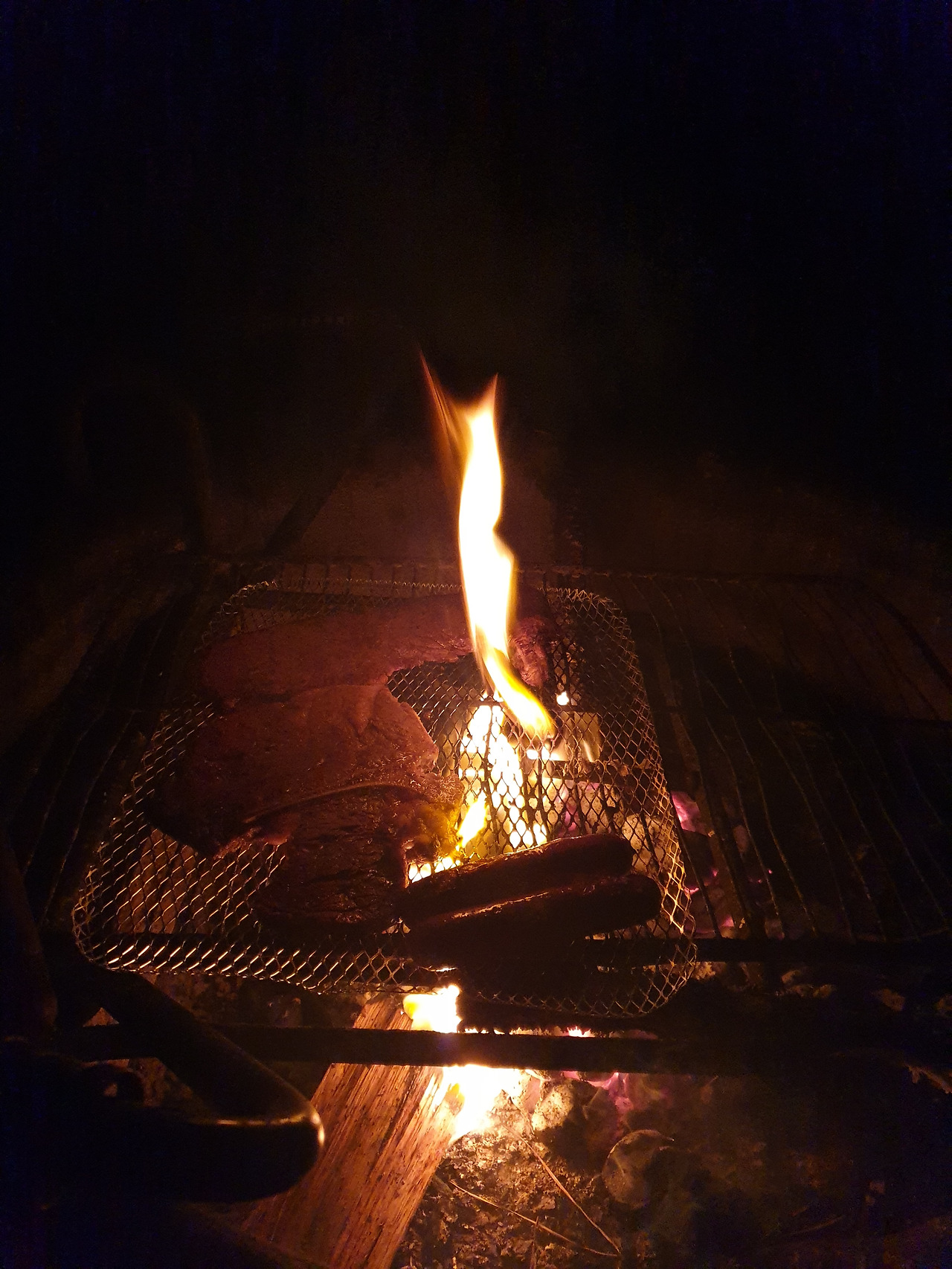 고기도 구워 먹었다. 일반적으로 캠핑장에 설치되어 있는 화로는 관리되어 있지 않아서 더럽다. 그래서 고기를 구워 먹기 위해서는 별도의 철망을 구입해야 한다. 역시 고기는 불맛이다. 어두워서 익었는지 안 익었는지 모르겠지만.