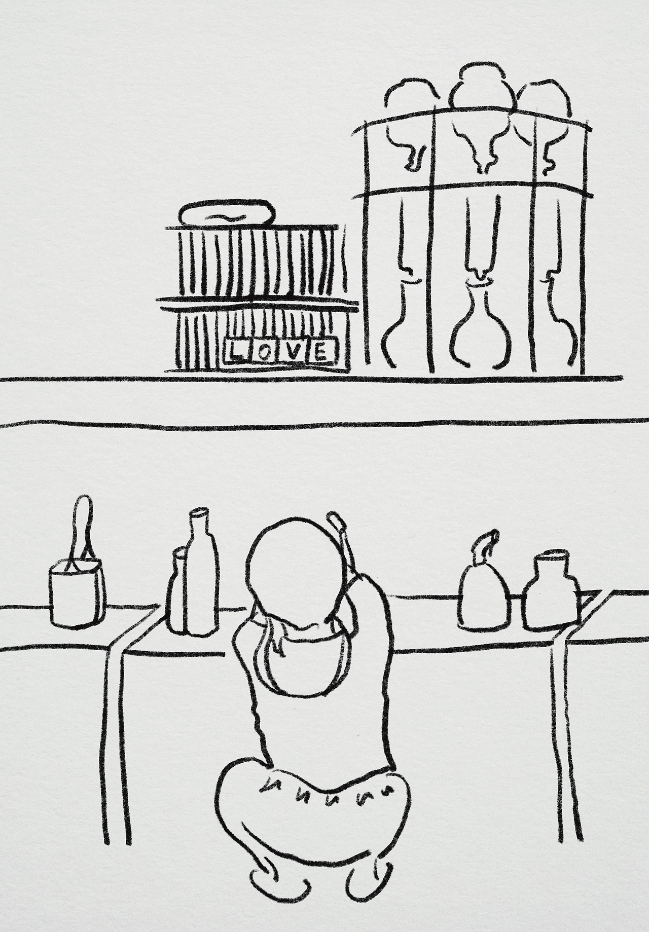 한 명은 선반 아래 쪼그려 앉아 분무기 연구를 하러 갔다.